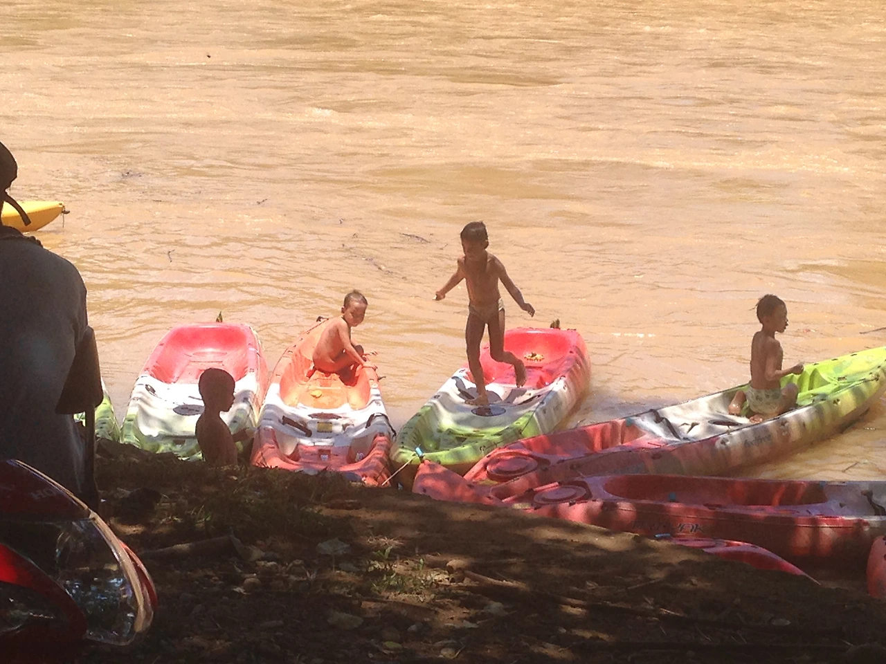 동굴을 나온 지 얼마 안 되어 카야킹 하러 왔어요. 자연과 더불어 살아간다는 느낌이 들었던 아이들의 순수한 모습에 미소가 절로 나와요.