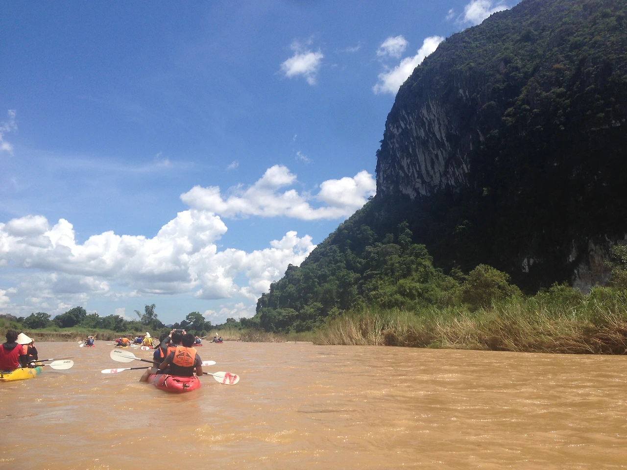 카야킹이 좋았던 점은 유속이 크게 빠르지 않은 데다, 베트남의 닌빈 투어와 비슷하게 자연을 벗 삼아 한가로이 풍경을 감상할 수 있어서예요. 게다가 뒷좌석에 안정감을 주는 카약 프로가 함께여서 마음이 한결 가벼웠어요.