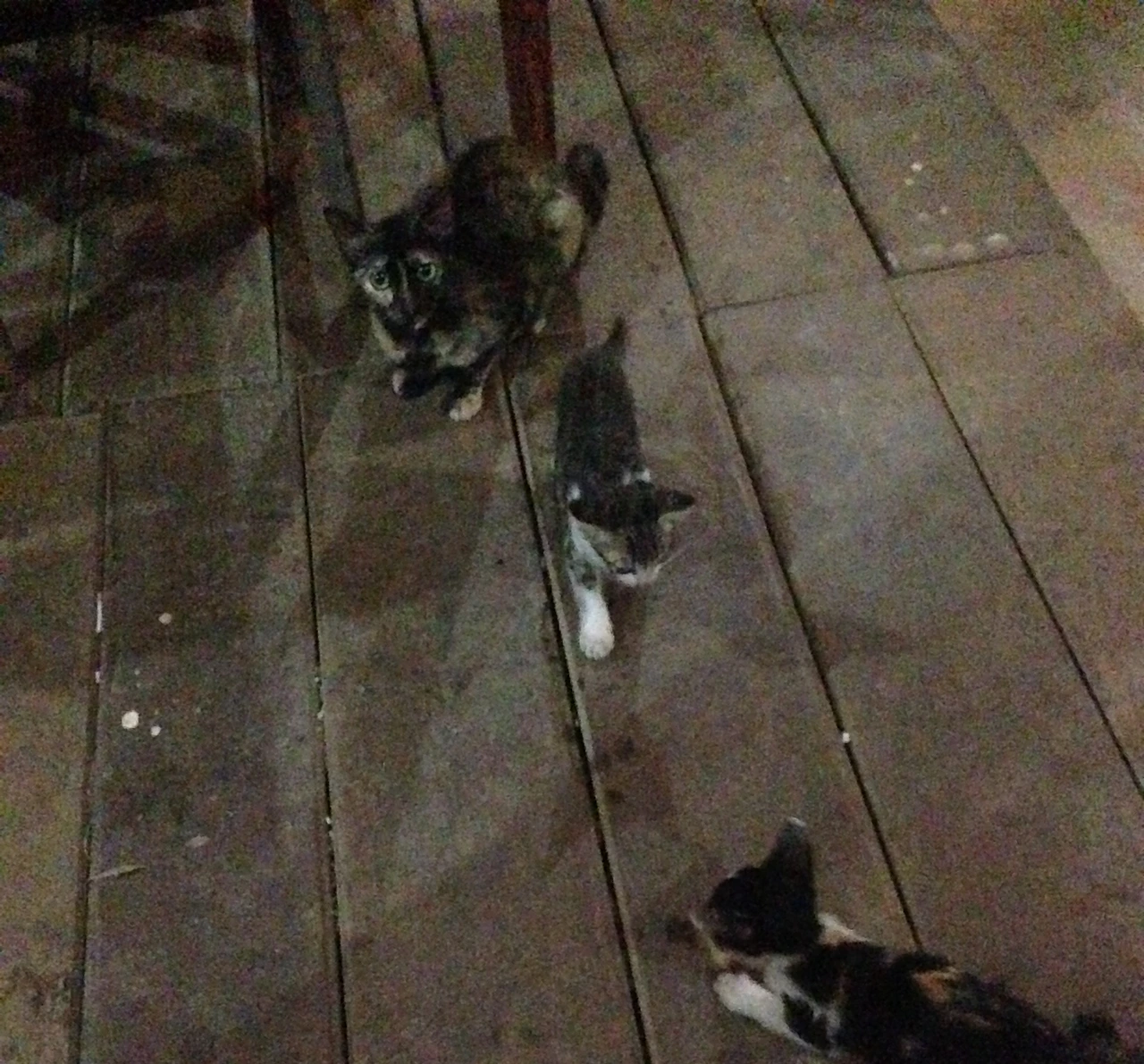 먹고 있는데 바닥에 '장화 신은 고양이'에서 나왔던 금방이라도 눈물이 왈칵 쏟아질 것만 같은 커다란 눈망울을 가진 어미 고양이의 슬픈 표정에 고기를 안 줄 수가 없겠더라고요. 한두 점 던져 줬더니 탁자 밑에서 새끼 고양이들이 냄새를 맡고 하나둘씩 우르르 달려 나와요.