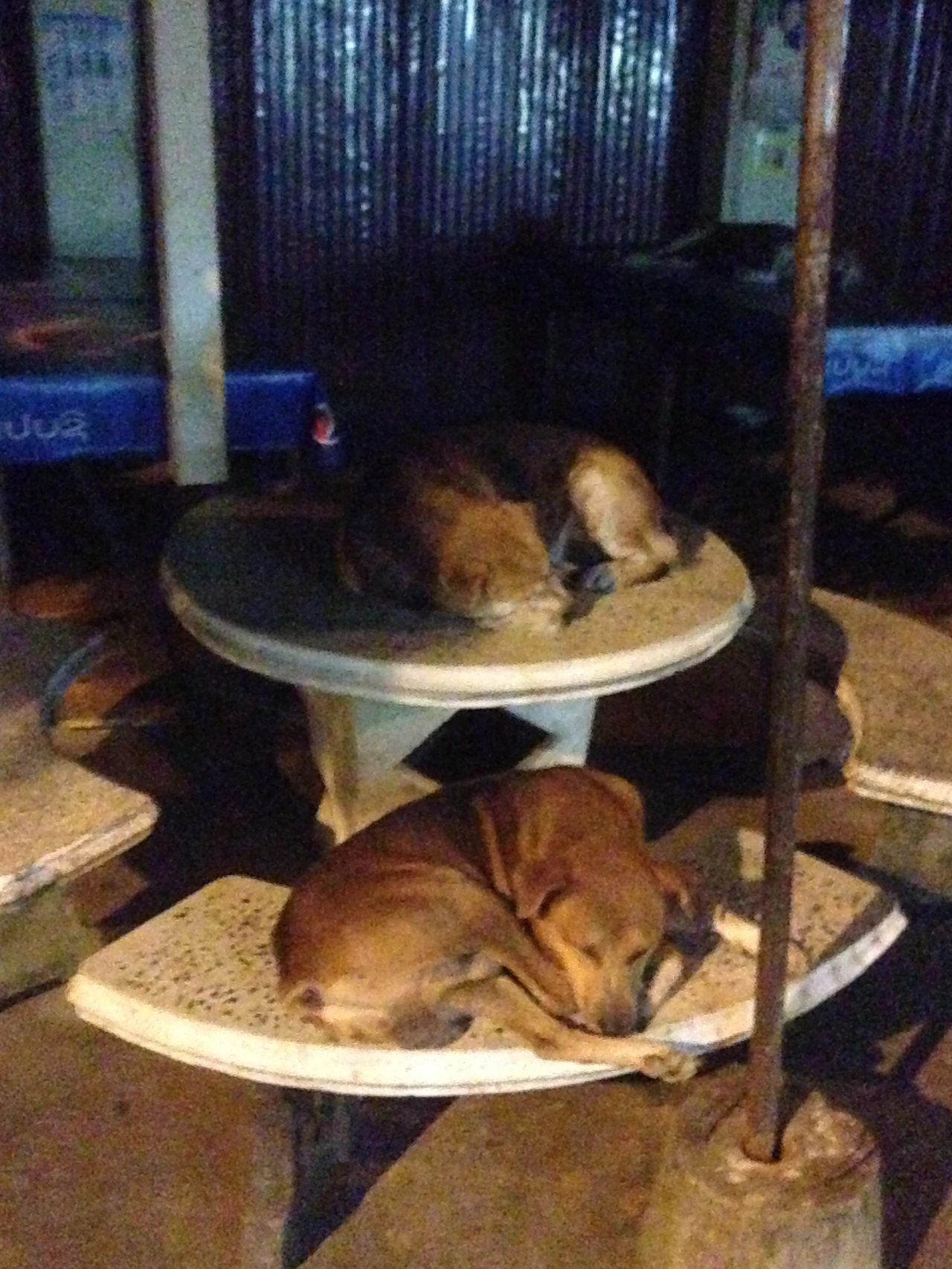 감사히 잘 먹었다고 엄지를 치켜세우고 웃으며 인사하고 나가는 길에, 테이블에 이미 잠을 자는 강아지와 고양이들을 발견했어요. 깨우면 안 되기에 최대한 조심스럽게 사진을 한 장 담아서 오던 길을 떠올리며 숙소로 돌아왔네요.