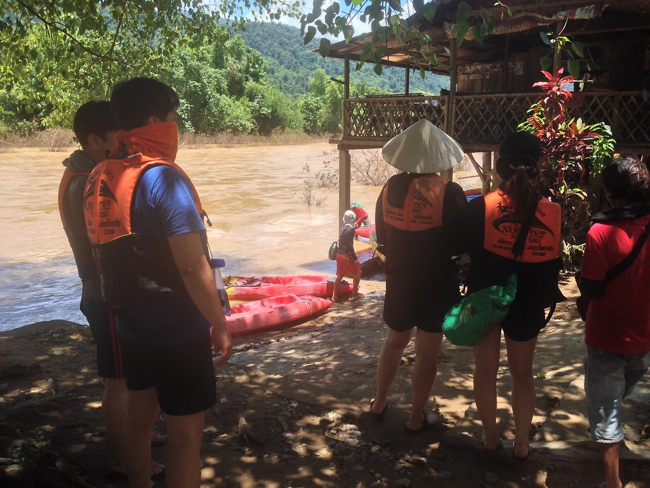 카야킹을 하다 보니 중간에 'river bar'라는 곳에 잠시 머물렀어요. 술을 마시고 카야킹 하다가 인명사고가 난 경우가 있다고 해서, 다들 더웠지만 술은 마시지 않았던 걸로 기억하네요.