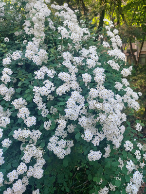 초봄의 새잎이 이젠 넘실거리고 하얗게 일렁이던 조팝꽃도 흔적만 남았다. 이른 아침 새소리는 심장을 두드린다. 수런수런 하던 노란 꽃창포도 그 우아했던 여운만 남겼고 드디어 수국 동산이 되었다. 연못 한가운데는 아름드리 소나무를 멋들어지게 심어 두었다.