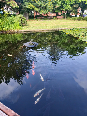 오가는 많은 사람들에게 볼거리 쉴거리 생각거리를 주는 연못, 그 작은 호수에 낮에 시간을 내서 한 번 가봐야겠다. 누군가가 그 잉어를 뜨서 잘 묻어주었기를.