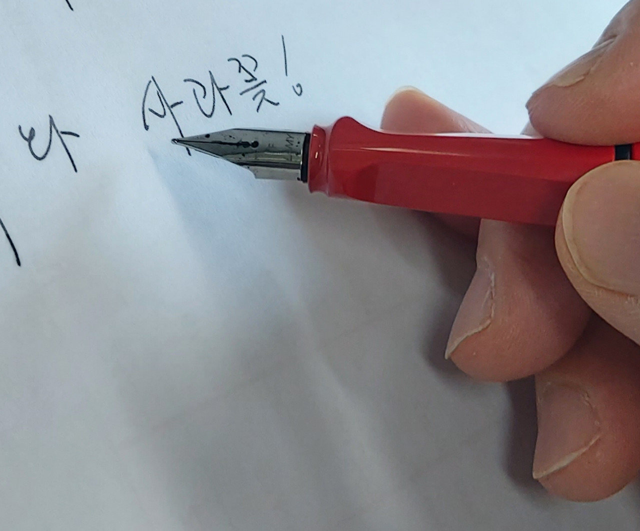 지금 이 글자를 그리고 있는 만년필은 크기부터 큼직하다. 큰 손에 느낌 좋게 잡힌다. 잉크를 채우기도 쉽다. 손에 없으면 금단현상까지 느끼는 애용하는 ***볼펜보다도 시원하게 그어진다. 날렵한 펜촉 모양이 잉크를 묻혀 썼다는 뾰족한 펜촉보다는 조금 작다. 하얀 종이를 콕 찍으며 사각사각 그어지는 느낌을 나누고 싶다. 종이에 뜻대로 글자를 남기며 달려가는 이 펜은 이제 다른 펜으로는 쉬 대체가 안될 듯하다.