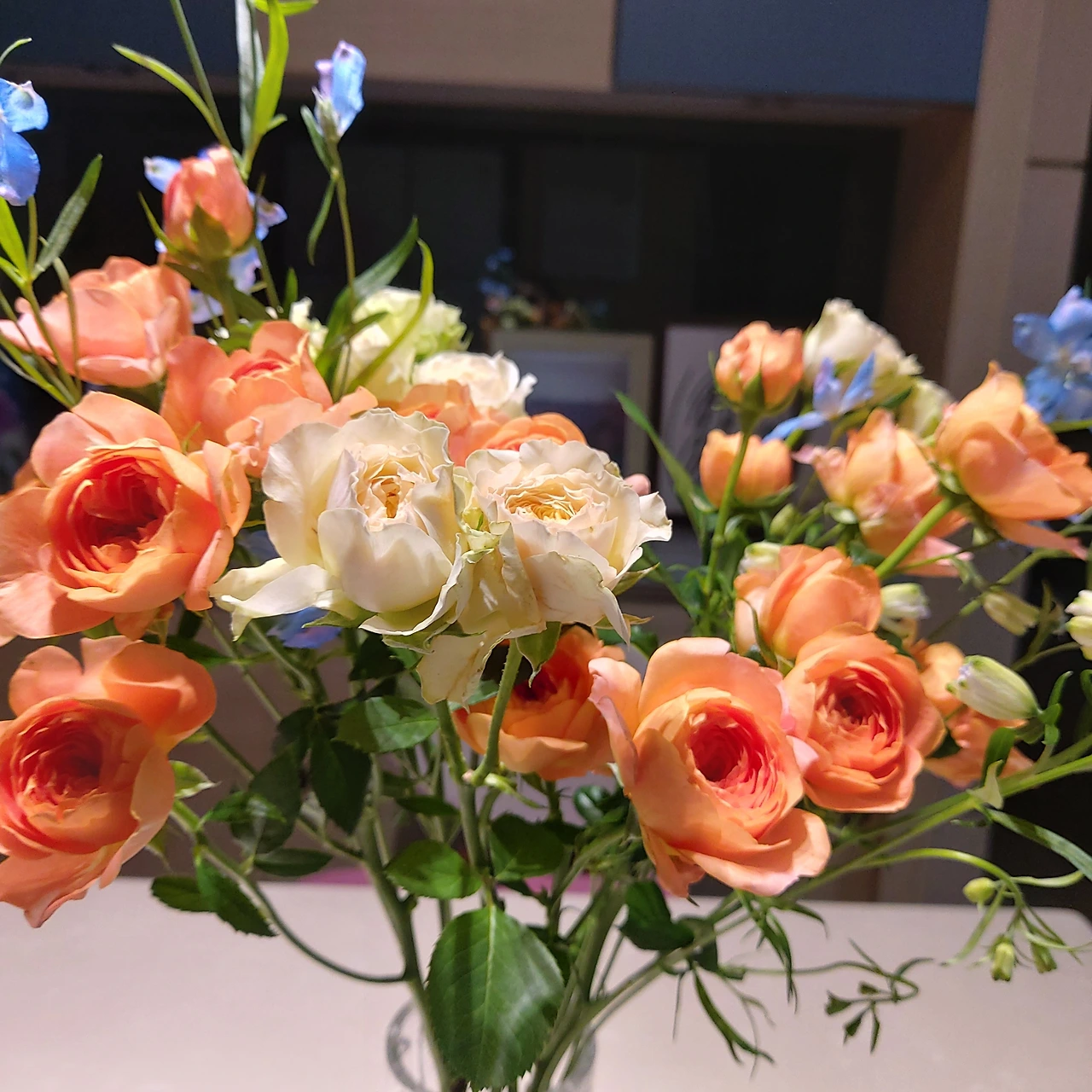 하얗고 연 노랗고 분홍 빛을 내는 자잘한 장미류가 많다