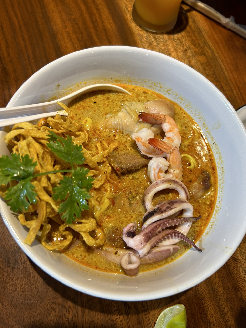 음! 묵직하고 깊은 카레맛 국물이 이곳이 왜 유명한지 말해줬다. 함께 시킨 사태도 땅콩소스와 잘 어울렸고, 사진은 없지만 삶아서 무친 호박잎도 한국 반찬 느낌이라 함께 곁들여 먹기 좋았다. 명성에 비해 별로라는 평을 내린 동생은 손칼국수 느낌의 면발이 자기 스타일이 아니라고 했다.