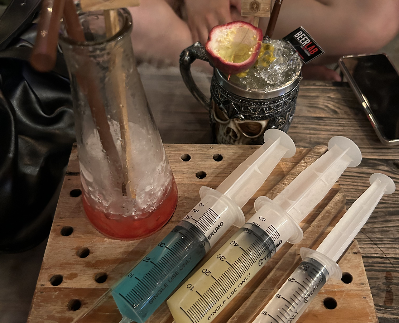 우리는 오는 길에 본 조용한 분위기의 펍으로 들어갔다. 비어랩이라는 곳이었는데 맥주 종류가 다양했고, 칵테일과 와인도 함께 팔았다. 우리는 배가 불러 칵테일만 두 잔 시켰지만 안주도 꽤나 맛있어 보였다. 칵테일을 주문하고 한창 수다를 떨다 문득 칵테일에 대마가 들어가면 어쩌지 하는 걱정이 됐다. 메뉴에 따로 대마가 들어간 술이 있었는데, 혹시나 그런 메뉴랑 섞여서 나올까 무서웠다. 직원에게 혹여나 대마가 들어가는 건지 재차 확인을 하고도 안심이 되지 않아 칵테일을 마시면서도 의심을 내려놓지 못했다. 나는 쫄보인가 보다. 칵테일은 250~300밧으로 비싼 편이었지만 비주얼이나 맛이 꽤나 마음에 들긴 했다.