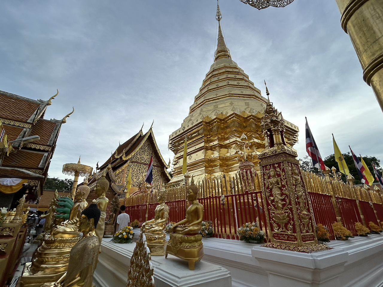 도이수텝에 들어서자 온 세상이 금빛으로 변했다. 우리나라의 절과 달리 태국 사원들은 정말 화려한 듯했다. 수련하는 수도승들과 템플 스테이를 하는 듯한 사람들이 무언가를 끊임없이 외우는 소리가 사원에 울려 퍼졌다. 어떤 뜻인지 알 수 없었지만 한 명 한 명의 염원이 담긴 듯했다.