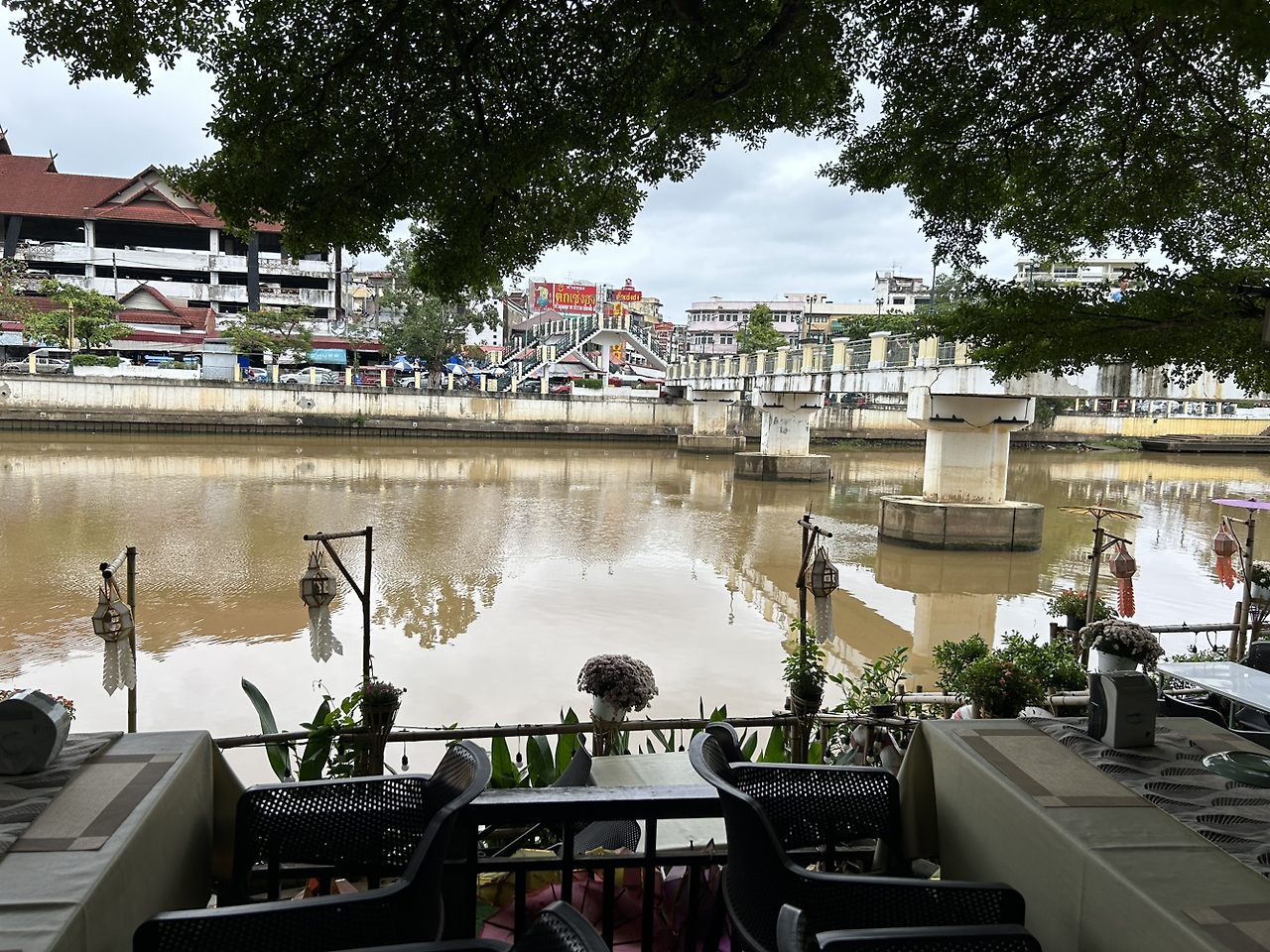 점심으로는 저번에 핑강 근처를 지나칠 때 야경이 멋있어 저장해 뒀던 식당에 방문했다. 저녁에는 사람이 북적여 보였는데 점심에는 우리뿐이었다. 나는 해외에서 음식을 잘 못 먹는다는 친구에게 가장 무난한 파인애플 볶음밥과 팟타이를 시켜주었는데 친구가 꽤나 마음에 들어 했다.(사실 이것도 못 먹으면 나한테 이 사건으로 10년은 고통받았을 터였다.) 우리는 비 내리는 핑강을 바라보며 멍을 때리다 이야기를 하다 하며 시간을 보냈다.