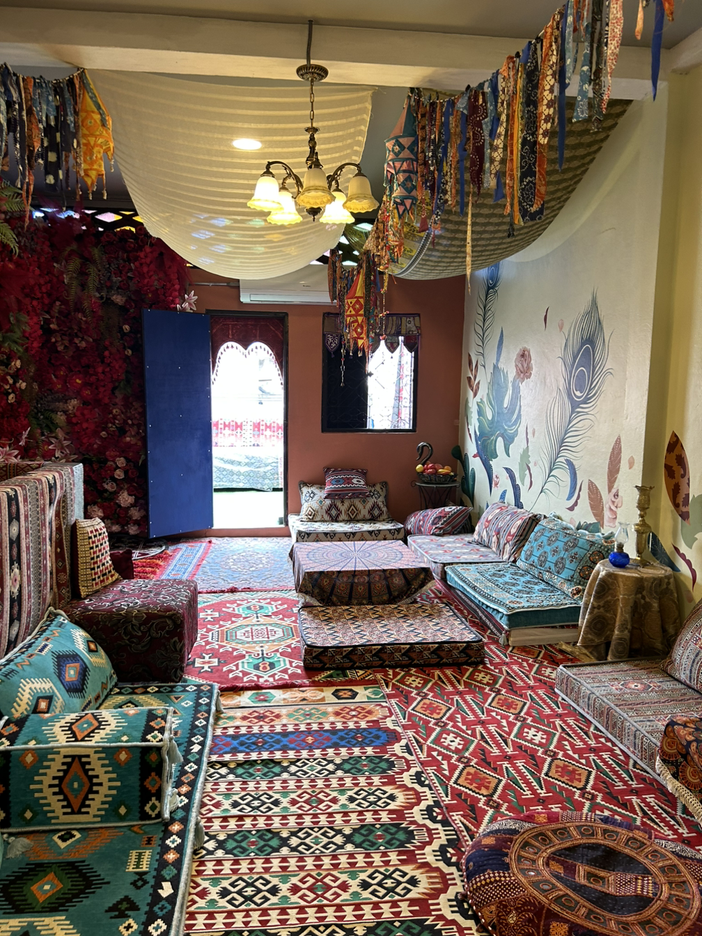 친구가 찾은 카페는 옷가게 2층에 자리 잡은 인도풍 인테리어가 인상 깊은 카페였다. 우리는 커피와 차를 시키고 카페 곳곳을 구경했다. 카펫부터 소파 쿠션 식기류까지 온통 인도풍이었는데 사진 찍기도 좋고 사람도 없어 우리는 오랫동안 그곳을 즐겼다. 친구와 오랜만에 진지한 대화를 했는데, 서로의 인생을 돌아보니 5년이라는 시간이 마냥 짧지만은 않은 것 같았다.