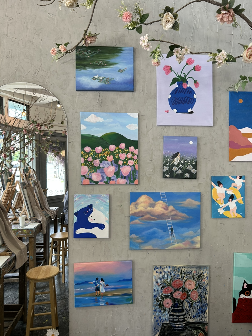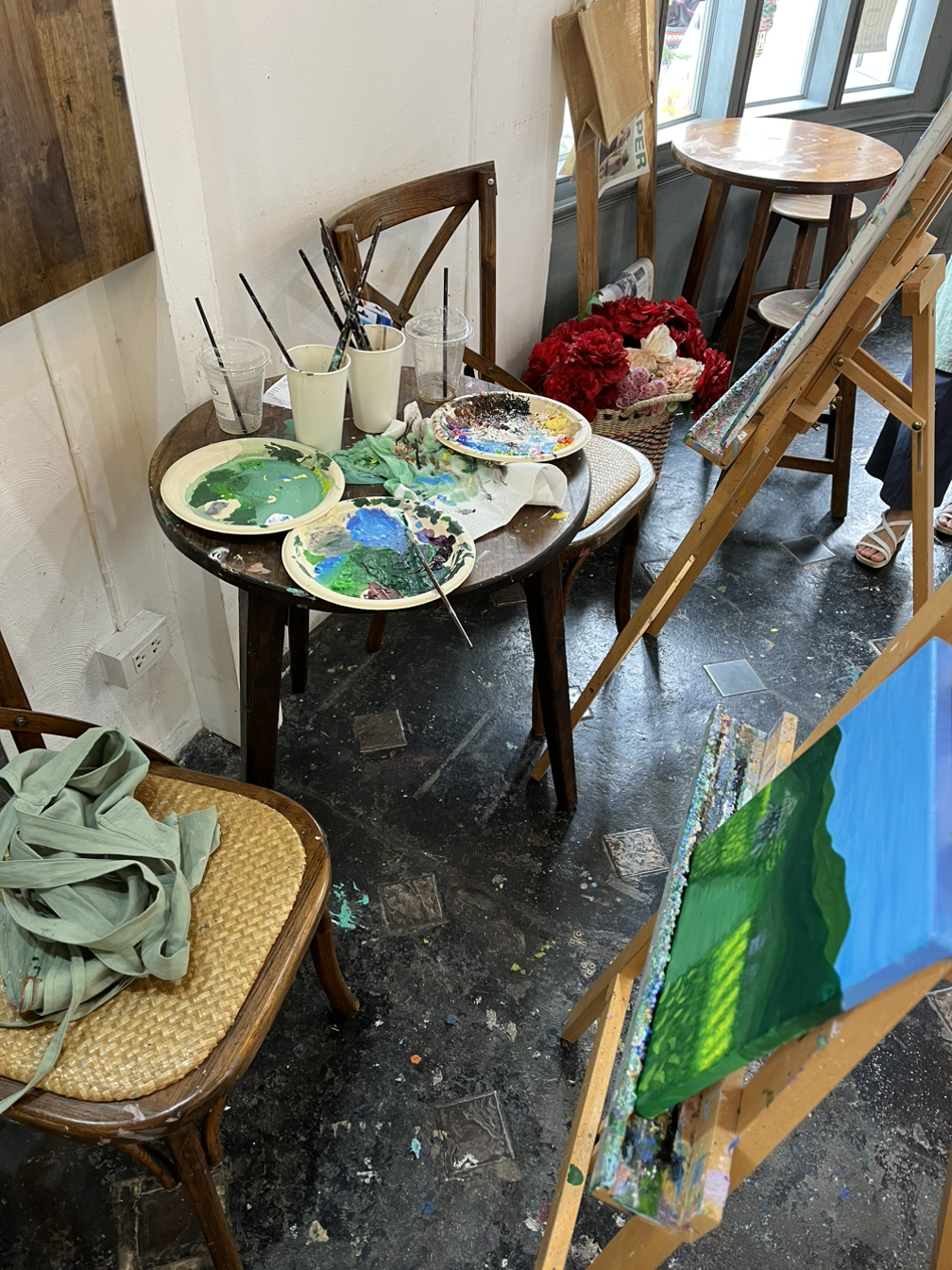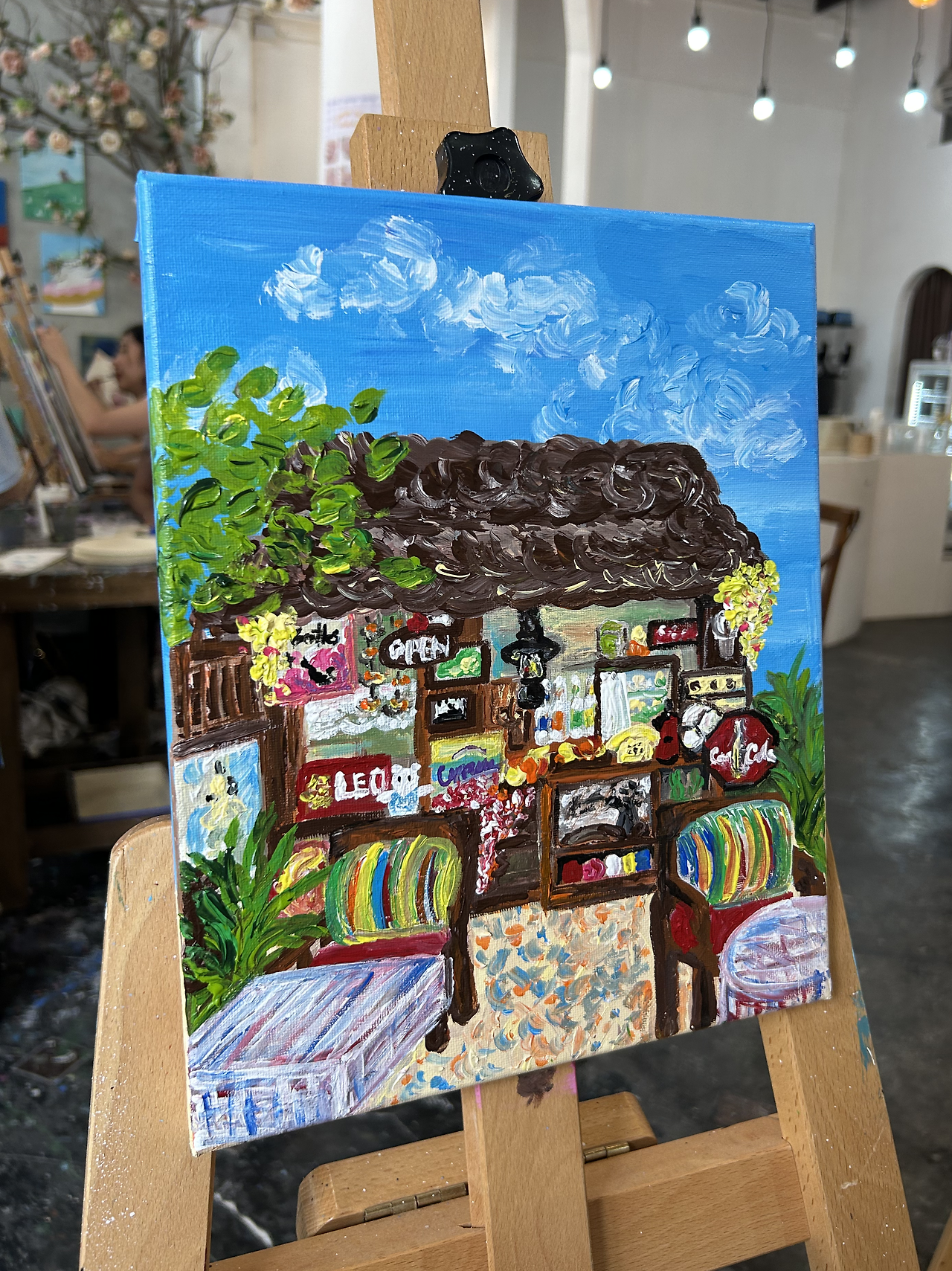 카페 사장님께 준비된 도안 말고 우리가 찍은 사진을 보고 직접 그리겠다고 말했더니, 카페 사장님이 “Are you a painter?" 하셨다. (대부분 도안이 그려진 캔버스를 받아 색칠 위주로 한다. 심지어 물감도 직원들이 다 짜줘서 너무 간편할 정도...!)