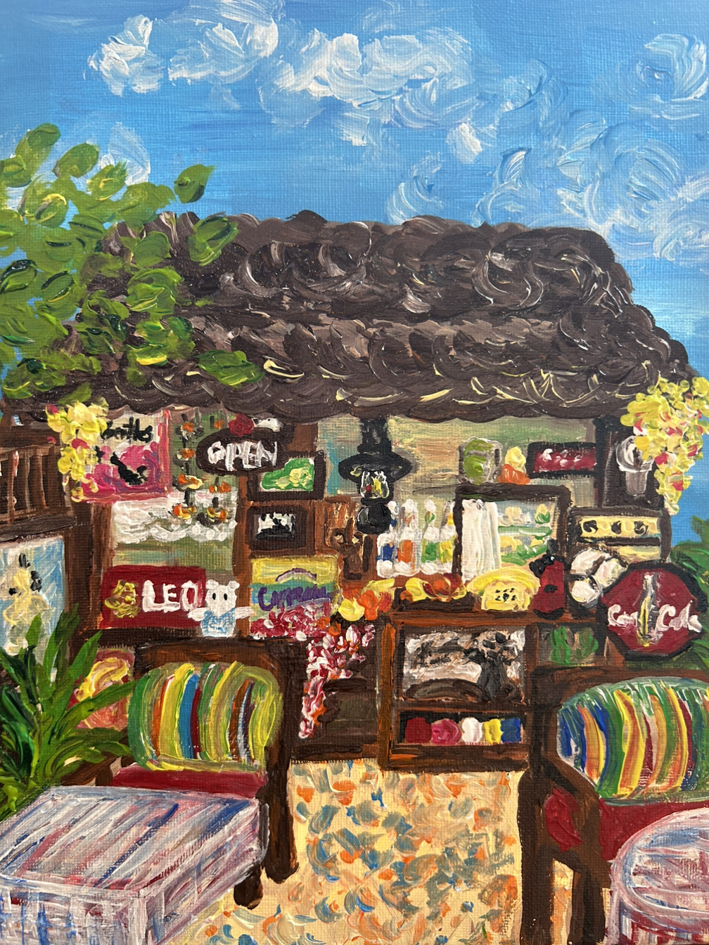 아기자기한 소품이 되게 많은 장소였기 때문에 하나하나 살리는 것이 꽤나 힘들었다. 그래서 디테일하게 살리기보다 그냥 형태를 살리는 것에 의미를 두었다. 사실 시간만 더 있었다면 하늘도 채우고 싶었는데 아쉬운 대로 만족하는 작품이다! 오래간만에 그림에 몰두하니 어깨도 아프고 목도 아팠지만, 열정을 불태워서 뿌듯했다.