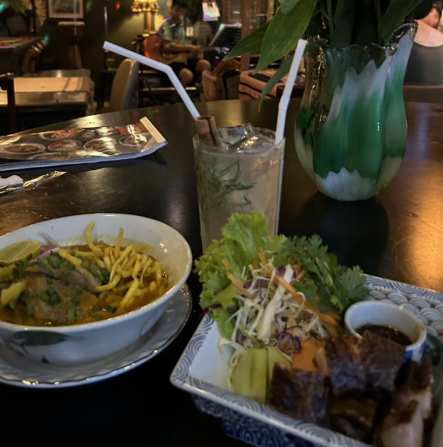 친구와 마지막 저녁식사를 한 곳. 바깥 분위기가 좋아서 들어갔는데 안에 인테리어도 마음에 들었던 곳. 라이브 음악도 있었다. 다만, 에어컨이 없어서 많이 더웠다. 카오소이와 삼겹살튀김을 먹었다. 치앙마이에서 삼겹살튀김?을 두 번째로 먹었는데, 왜 다들 맛있다고 하는지 모르겠다. 카오소이는 괜찮았다. (다음에 가면 술만 마실 듯)