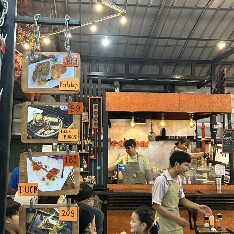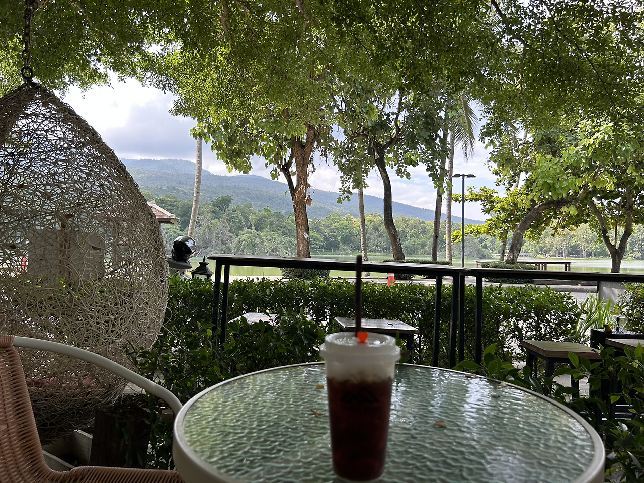 앙깨우 저수지 뷰를 자랑하는 카페. 음료와 다양한 음식을 판다. 한참을 앉아서 혼자 이것저것을 하며 시간을 보냈다.