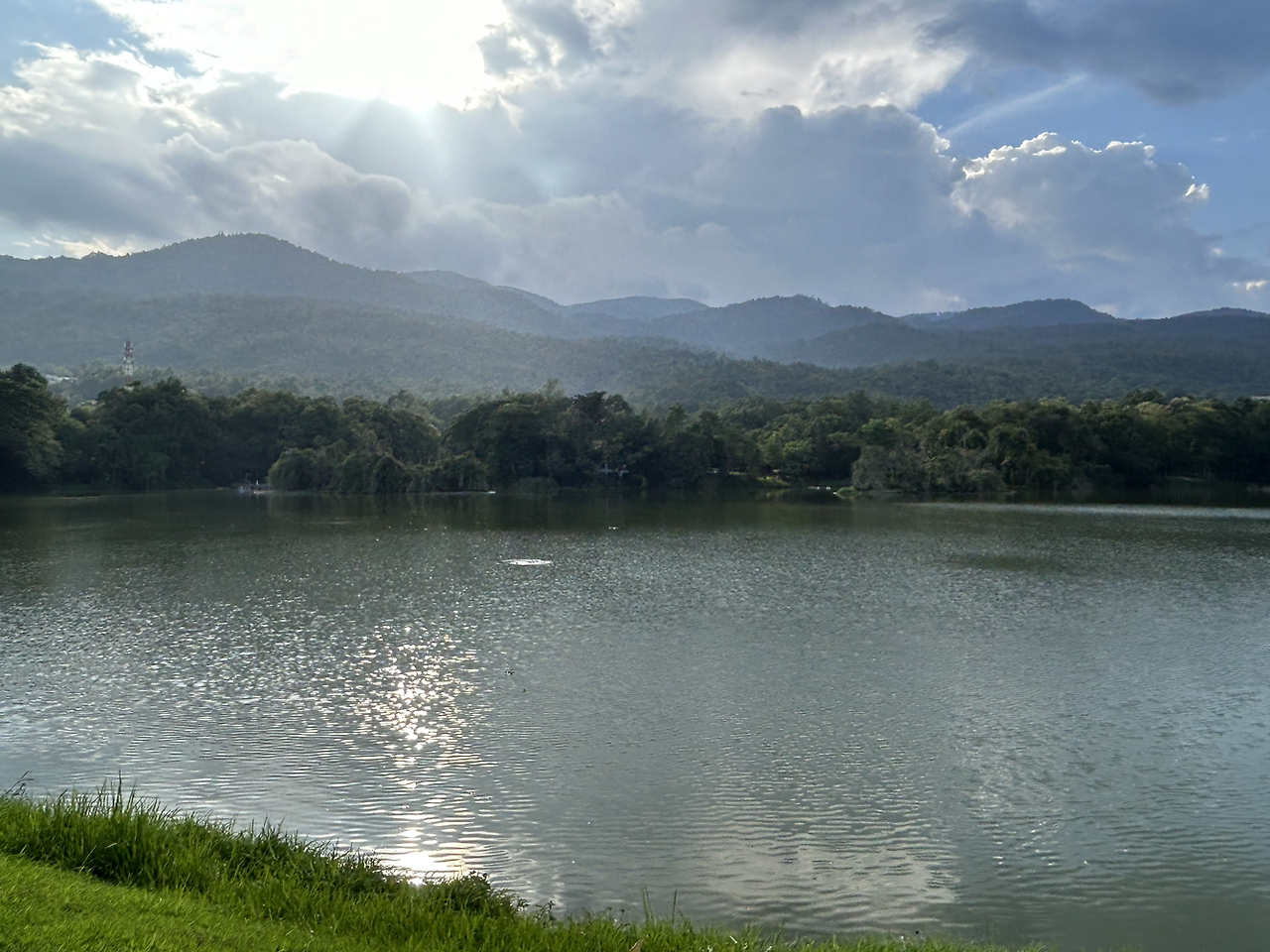 치앙마이 대학교 한가운데 자리 잡은 잔잔하고 큰 저수지. 쨍한 햇빛을 받으며 주변 나무들과 파란 하늘을 한 폭의 그림처럼 담아내고 있다. 데이트하거나 산책하는 사람들도 많았다. 저수지를 보면서 그냥 멍만 땨려도 힐링된다.
