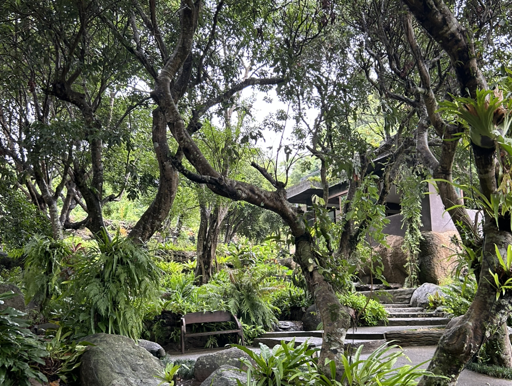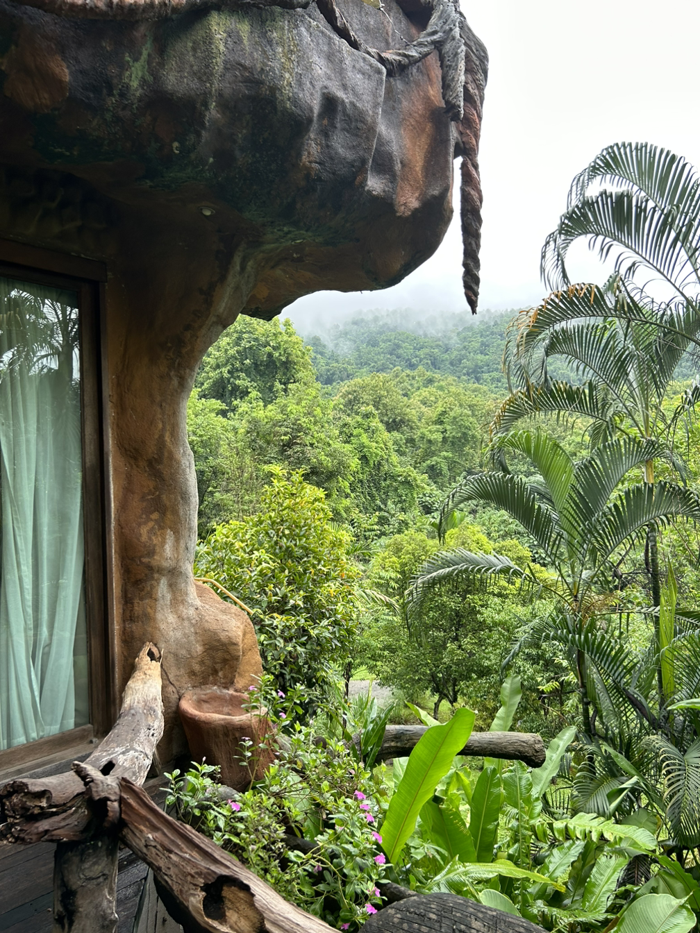 밖으로 나가 어제 그토록 궁금해했던 방갈로의 형태와 주변을 제대로 확인했다. 나무와 돌을 형상화한 방갈로는 주변 자연과 잘 어우러졌다. 주변은 정말 자연뿐이었다. 다른 방갈로도 멀리 떨어져 있어 서로의 존재를 잘 모를 정도였다. 역시, 또 괜한 걱정에 잠을 못 잤네!