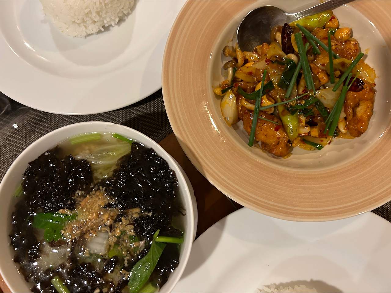 나는 엄마와의 대회 후 잠잠해진 마음으로 숙소로 돌아와 저녁을 먹으러 리조트 식당에 갔다. 조식을 먹은 후 사장님 요리에 대한 신뢰가 차고 넘쳤던 우리는 사장님께 가장 맛있는 것을 추천받아 시키고, 조식 때 먹은 맑은 국이 너무 맛있어서 이번엔 미역이 들어간 맑은 국을 시켰다.