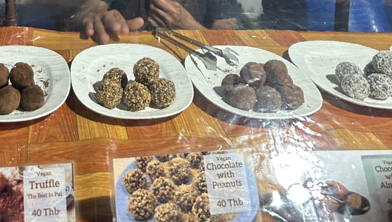그는 빠이에서 최고 맛있는 초콜릿집이라며 워킹스트리트에 있는 수제 초콜릿가게로 나를 데려갔다. 우리는 엄청 크고 달달한 초콜릿을 하나씩 먹으며 워킹스트리트의 상점들을 둘러보고 노래가 들려오는 술집들 이곳저곳을 구경했다.