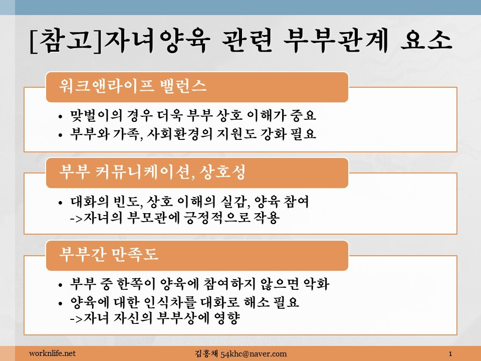 갈등이라는 부부관계의 부정적인 면만이 자녀의 성격에 영향을 미치는 것은 아닙니다. 부부의 애정관계가 강할수록 가정의 분위기와 응집성이 높고 이것이 자녀의 우울을 낮춘다는 연구도 있습니다.