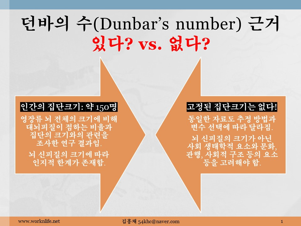 참고로 스웨덴 스톡홀름대학의 파트리크 린덴포스(Patrik Lindenfors) 교수팀은 2021년 5월 5일 영국 왕립학회가 발행하는 학술지 Biology Letters에 게재한 논문에서 던바의 수(Dunbar’s number)에 이의를 제기했습니다. 이 연구팀은 영장류 두뇌의 신피질 양과 집단 그룹 크기 관계를 몇 가지 다른 통계법으로 분석하였습니다.
