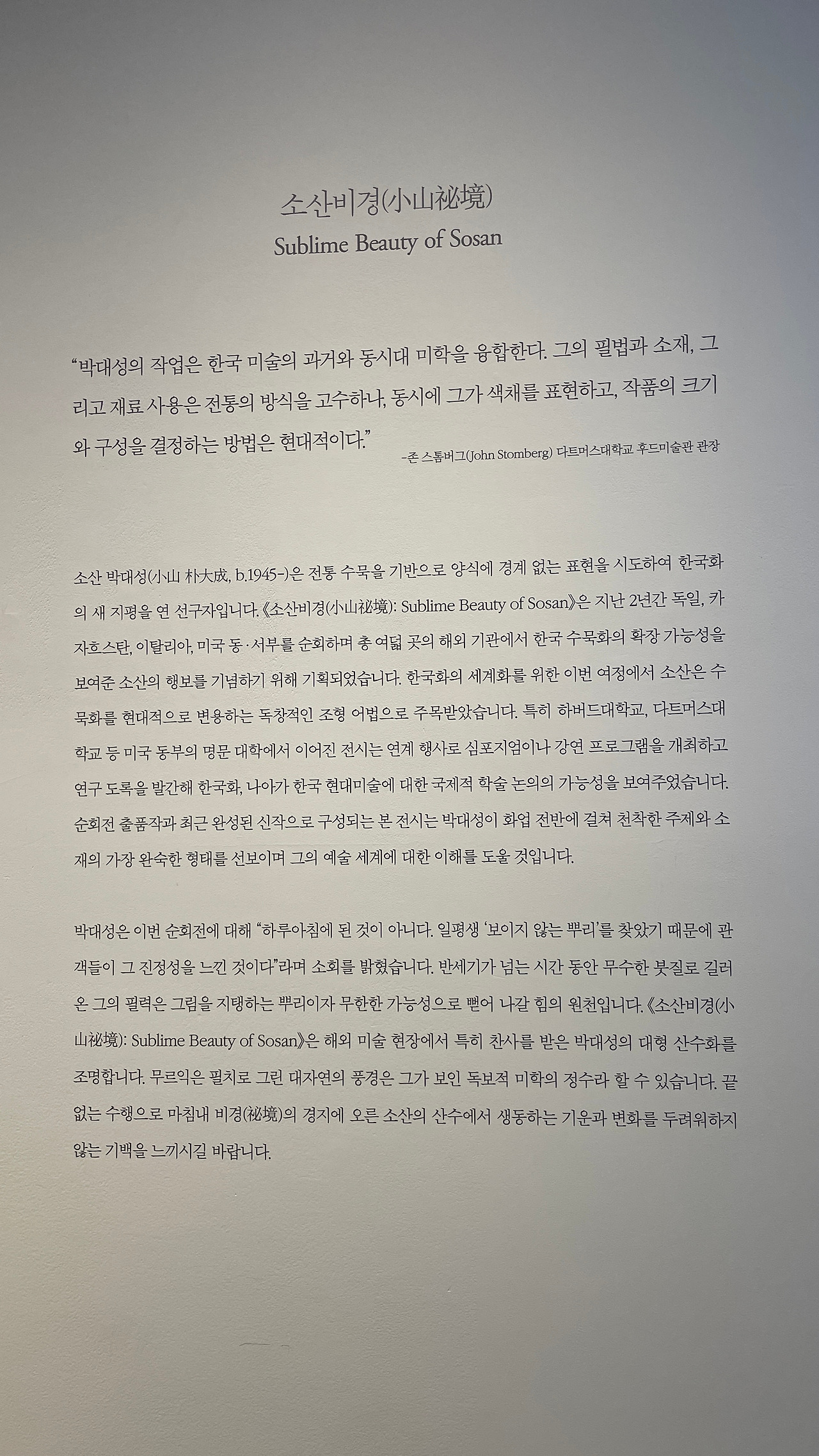 2023년 3월 23일 가나아트센터에 ‘박대성 해외 순회 기념전 소산비경’을 보러 다녀왔어요.