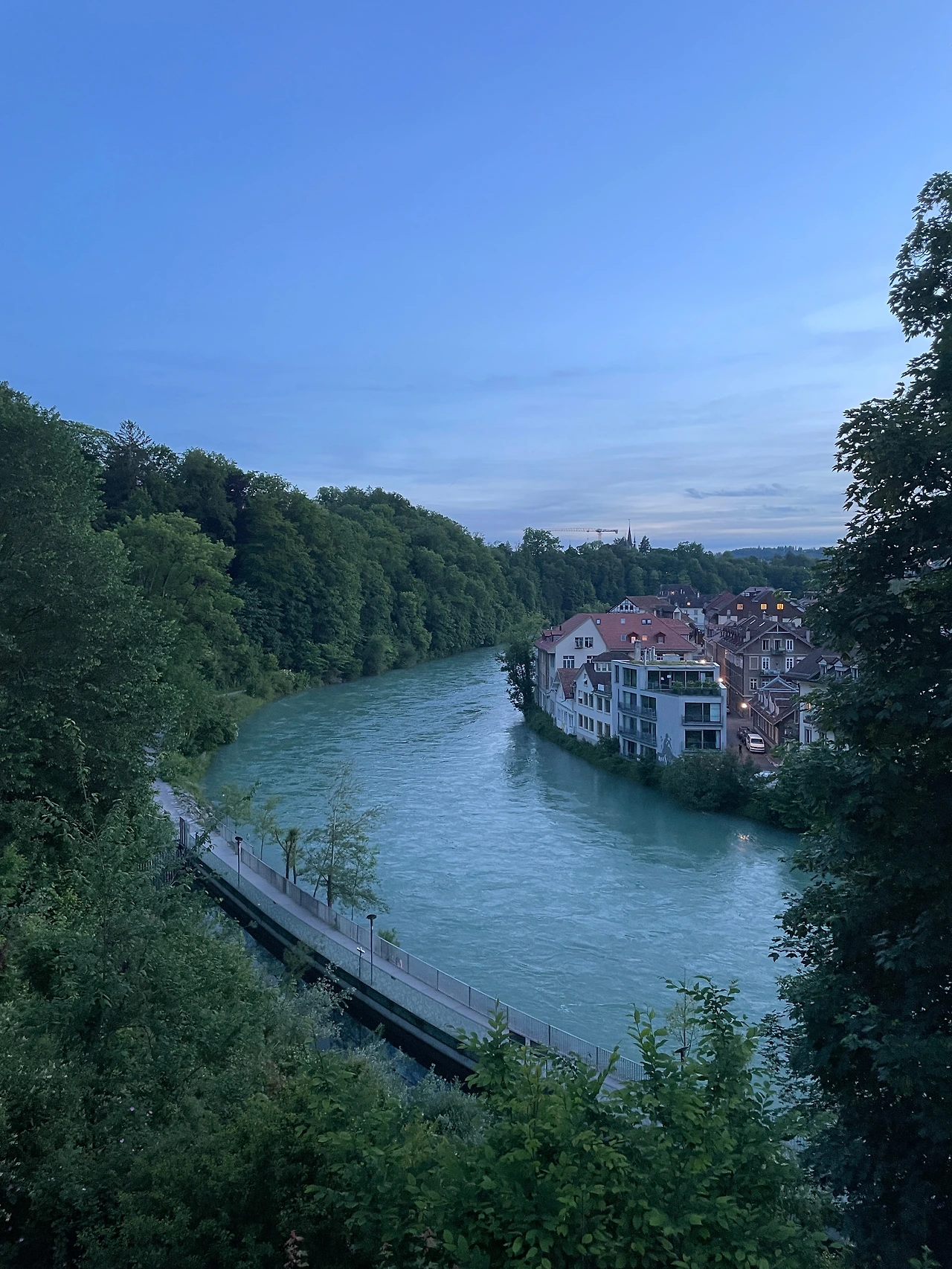 나는 취리히 공항에서 그녀를 만나 미리 구매해 두었던 스위스 SBB 구간권, 세이버데이 패스를 이용해 난생처음 SBB 기차를 타고 1시간 20분 만에 베른역에 도착했다. 그녀의 집에 캐리어를 두고 트램을 타고 해질 무렵(p.m. 9:30), 장미공원(Rosengarten)에 가서 베른 구시가지와 아레강을 내려다보며 아름다움에 감탄했다. 곰공원 건너편에서 트램을 타고 귀가해서 스위스의 첫날밤을 보냈다.