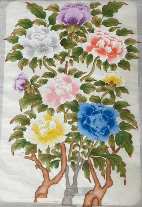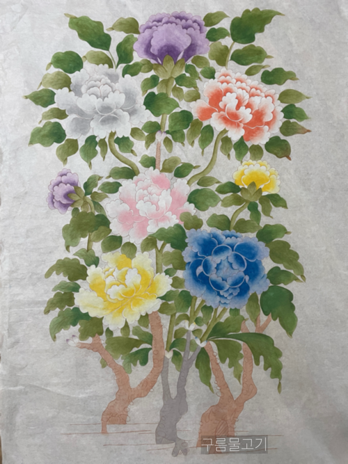 이번에 완성한 궁모란도는 820*450 사이즈로 8월 1일에 본그림을 그렸고 9월 23일에 완성했다. 꽃씨는 나를 표출하는 것이니 마음대로 그리라는 선생님 말씀대로 자유롭게 찍어보았다.