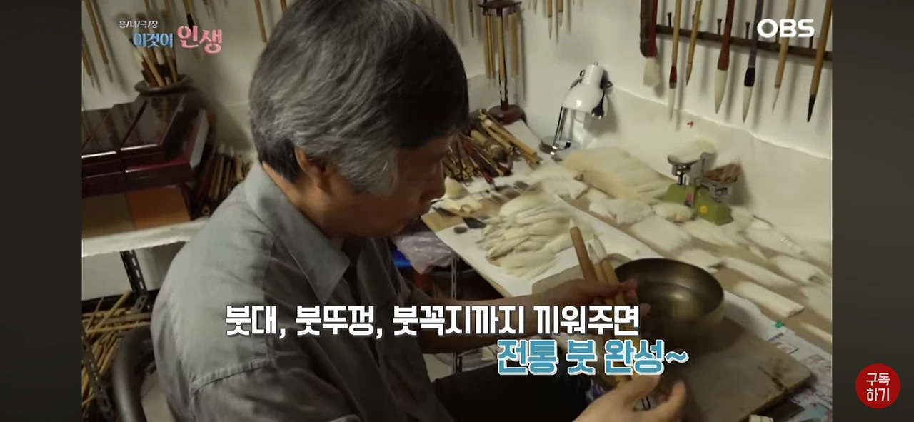 요즘 같은 인스턴트 시대에 이런 전통적인 방식으로 수많은 과정을 통해 한 자루의 붓이 만들어진다.