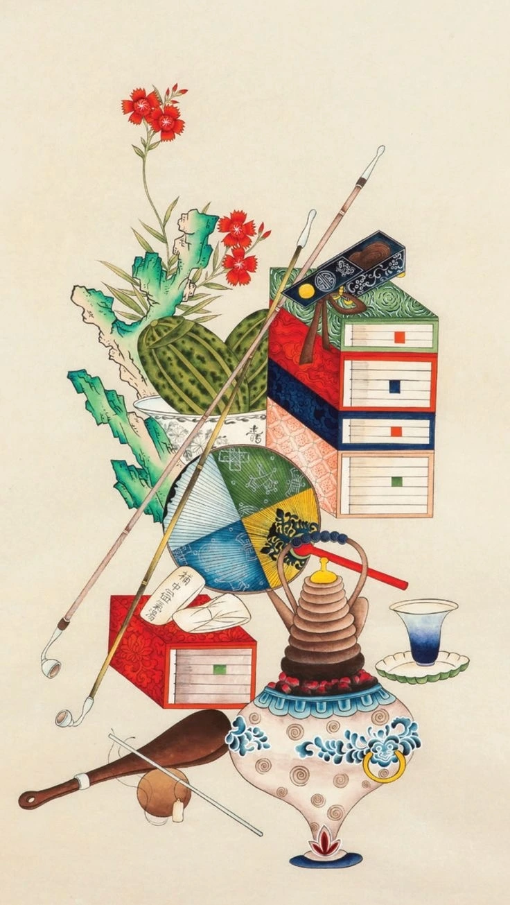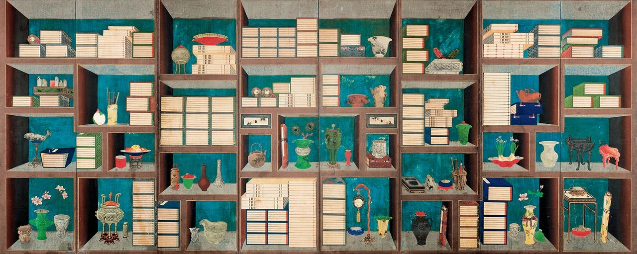 책거리는 책을 비롯한 여러 가지 물품을 그린 그림이다. '책'은 책(冊)을, '거리'는 대상이나 소재임을 의미한다. 18세기 후반부터 20세기 초반까지 유행하였으며 왕에서 서민까지 전 계층의 사람들이 향유했던 그림의 종류로, 책과 학습을 중요하게 생각했던 조선의 문화를 보여준다. 책가도(冊架圖), 문방도(文房圖)라고도 한다. <출처;위키백과>