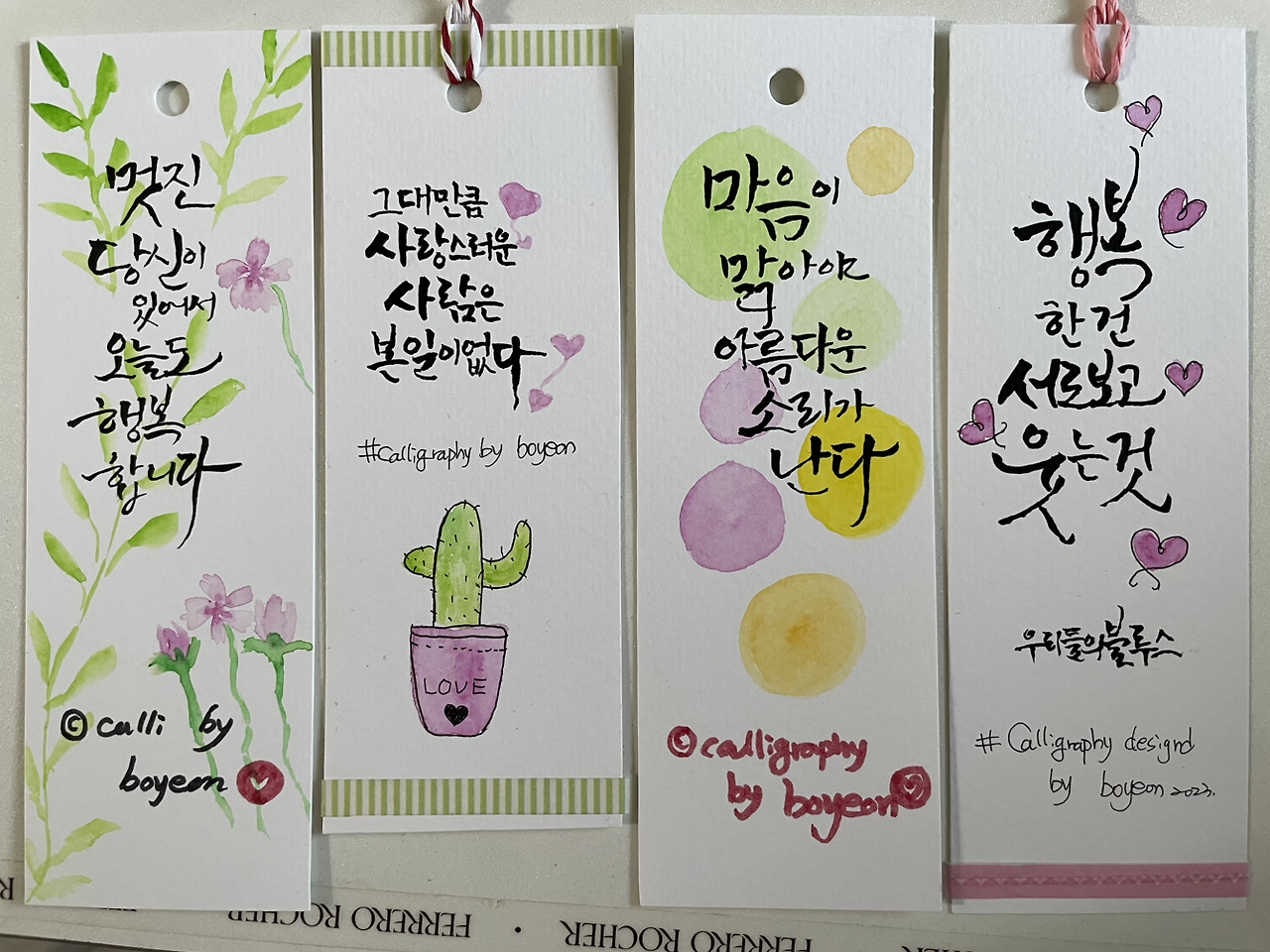 캘리의 쓰임은 경조사 때나 명절, 생일에 카드나 현금봉투를 쓸 때 좋다. 친구나 지인에게 그림을 그리고 캘리그래피를 적어 선물하면 귀하게 여기고 기뻐했다. 세상에 하나뿐인 정성 가득한 선물이니 내가 받는 입장이라도 좋아할 수밖에 없을 것 같다.