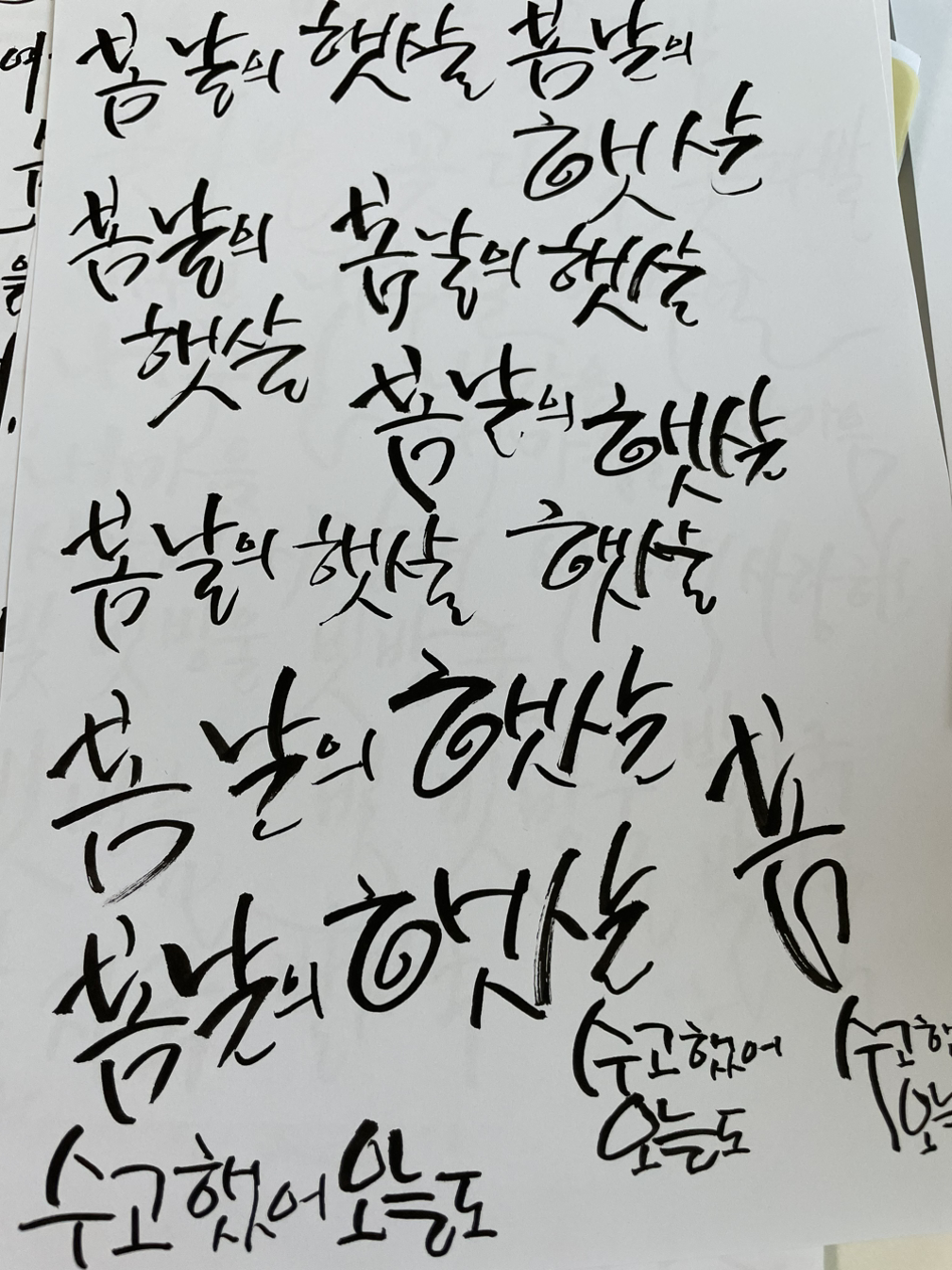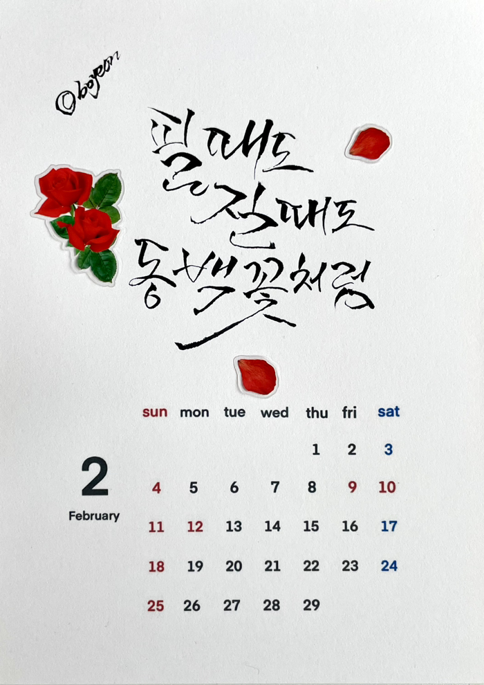 캘리의 특징은 첫째, 띄어쓰기를 하지 않는다.