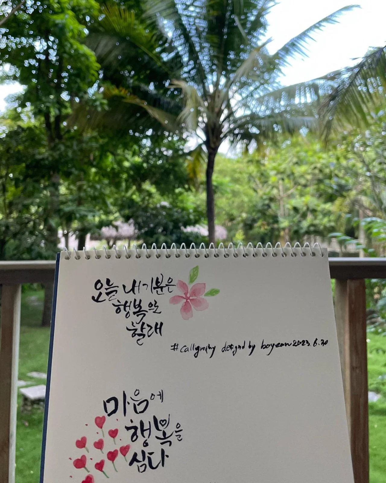 저는 피부과 약을 계속 바르고 먹고, 선크림을 바르고, 선캡을 늘 쓰고 다녔어요. 손에도 목에도 선풍기를 지니고 다녔어요. 두 아이는 호핑투어를 가고 저는 혼자 남아 수영을 하다가 캘리와 수채화를 했어요. 얼굴 때문에 스트레스를 많이 받았지만 여행하는 동안 힐링한 덕분에 감사함도 많이 느끼고 행복했어요. 여행의 매력은 또 다른 나를 찾을 수 있는 시간이자 나를 돌아보는 시간이며, 다시 돌아올 곳이 있다는 것이 아닐까요. 베트남은 거리상으로 가깝고 기후가 온난하고 물가가 싸고 이국적인 정서가 도처에 남아있고, 음식이 입에 맞아서 좋았어요. 저는 또 여행을 계획 중인데 아마도 그 유명한 경기도 다낭시에 갈 듯합니다. 여행은 지갑이 넉넉할 때 가는 게 아니라 건강할 때 가야 제대로 즐길 수 있으니까요. 여행? 가고 싶으면 그냥 떠나세요. 이거 저거 따지다 보면 못 갑니다. 미루기만 하다 보면 못 가요. 더 나이 먹고 힘 빠지고, 아프면 가고 싶어도 못 간다고요.