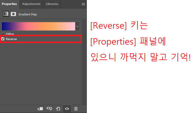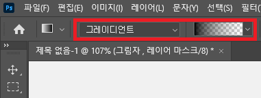 -레이어 마스크가 자동으로 적용된 상태에서 [Gradient] 툴을 활용해 [검정색]&[투명격자]가 잘 선택되어 있는지 확인한 후 아래에서 위로 살짝씩 지워줘 보도록 하자. 색 보정이 왼쪽 상단에만 적용하기 위한 방법이다.