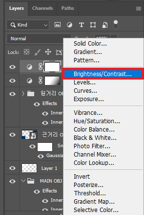 -뿌연 느낌이 추가가 되니까 대비가 약해진 느낌이 든다. [Create New Fill] > [Brightness/Contrast] 추가.