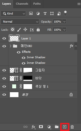 -근거리 오브젝트 말고도 먼 거리에 있는 오브젝트로 함께 추가해줘 보도록 하자. 사이즈는 작아야 한다. [Inner Shadow] 효과는 Alt 드래그로 기존에 만들어 뒀던 효과를 가져왔다.