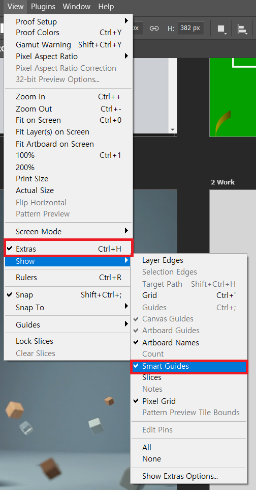 가운데 정렬을 쉽게 보여주는 스마트 가이드를 어떻게 ON하는지 말해보고자 한다.