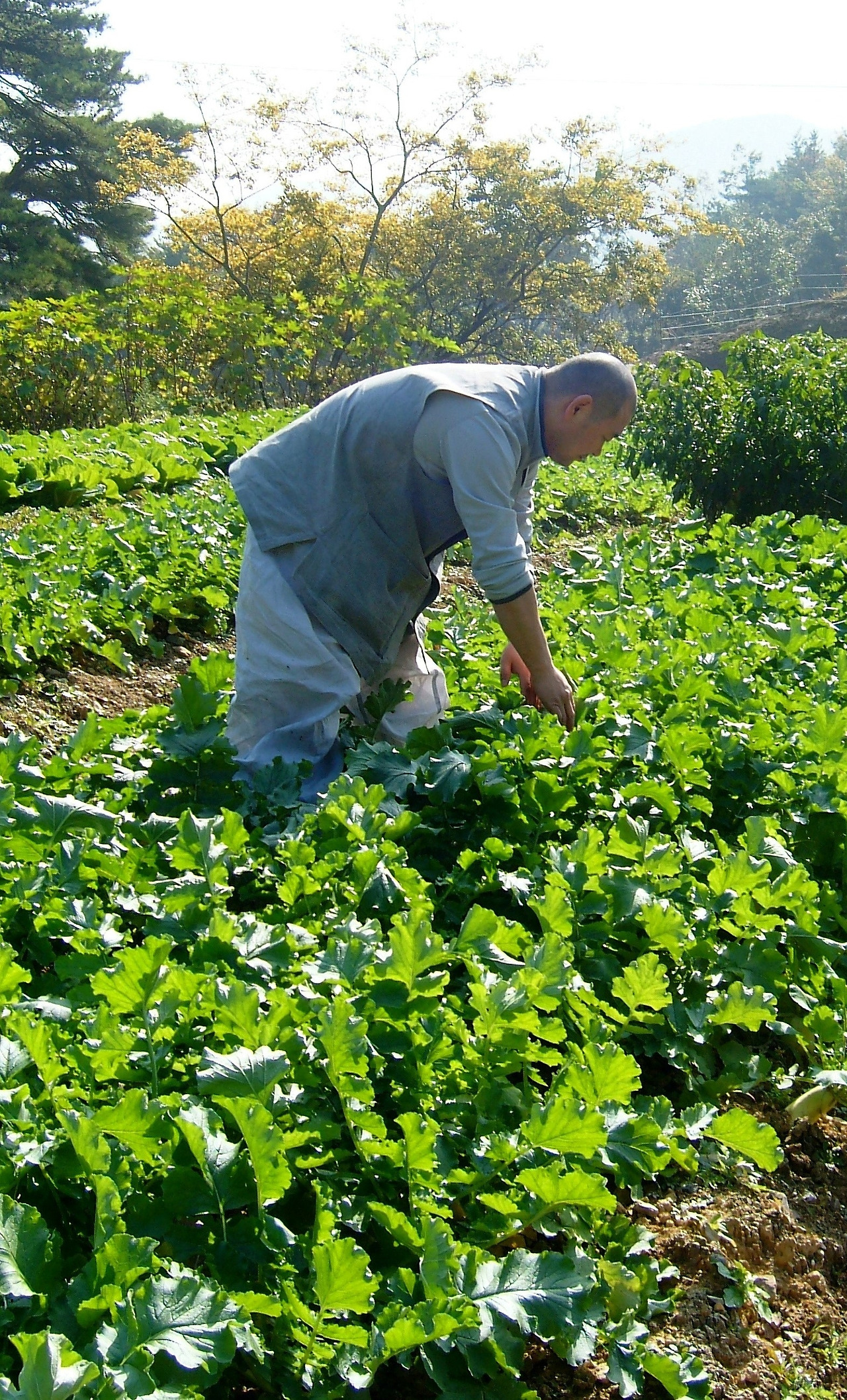 “정혜사에서 처음으로 농사를 지으면서 유기농이 얼마나 힘든지 알게 됐어요. 우선 농약을 사용하지 않으니까 벌레 잡는 일부터가 만만치 않았죠. 무엇보다 퇴비를 만드는 게 힘들었는데, 볏짚을 구하기 어려우니까 낙엽을 섞어 쓰곤 했어요. 하긴 요즘은 기계로 벼를 수확하니 어디서든 볏짚을 구경하기 힘들어졌죠. 게다가 요즘 사람들은 화학조미료나 방부제 섞인 음식들을 많이 먹으니 분뇨조차 썩지를 않아요. 썩어서 발효가 일어나야 퇴비를 만드는데 발효 자체가 안 되니 퇴비를 만들기가 힘들죠. 그러니 일반 농가에서 유기농 농사를 한다는 건 사실 힘든 일이에요. 그래도 선방 스님들은 화학조미료나 인스턴트식품을 자제하고 자연식 위주로 식사를 하니까 분뇨가 썩어 퇴비로 쓸 만하죠.”(웃음)