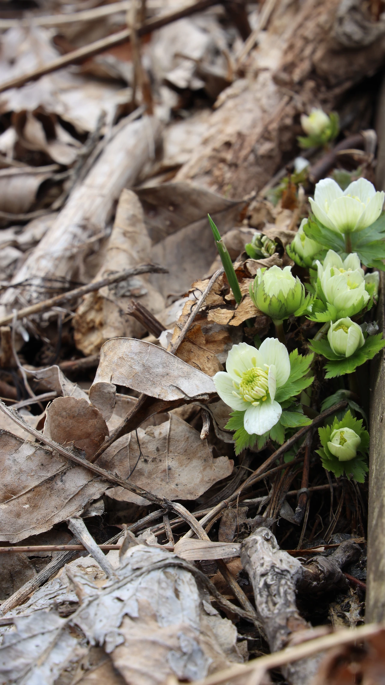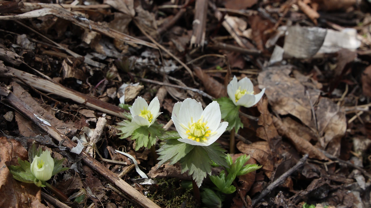 군데군데에 아직 녹지 않은 눈이 있다. 낮기온이 올라간다고 했는데, 여기는 아직 바람이 춥다. 이렇게 4월에도 눈이 남아 있는 곳이 소백산이다. 낮에는 햇빛을 느낄 수 있지만, 잔설이 남아 냉기를 느낄 수 있는 곳을 이 꽃은 좋아한다고 한다. 1935년에는 지리산의 모데기마을이 이곳과 같았나 보다. 그래서 이 꽃은 마을에도 피었나 보다. 그러나 이젠 마을에서는 사라지고, 해발 1000m가 다 되는 이곳에 피었다.