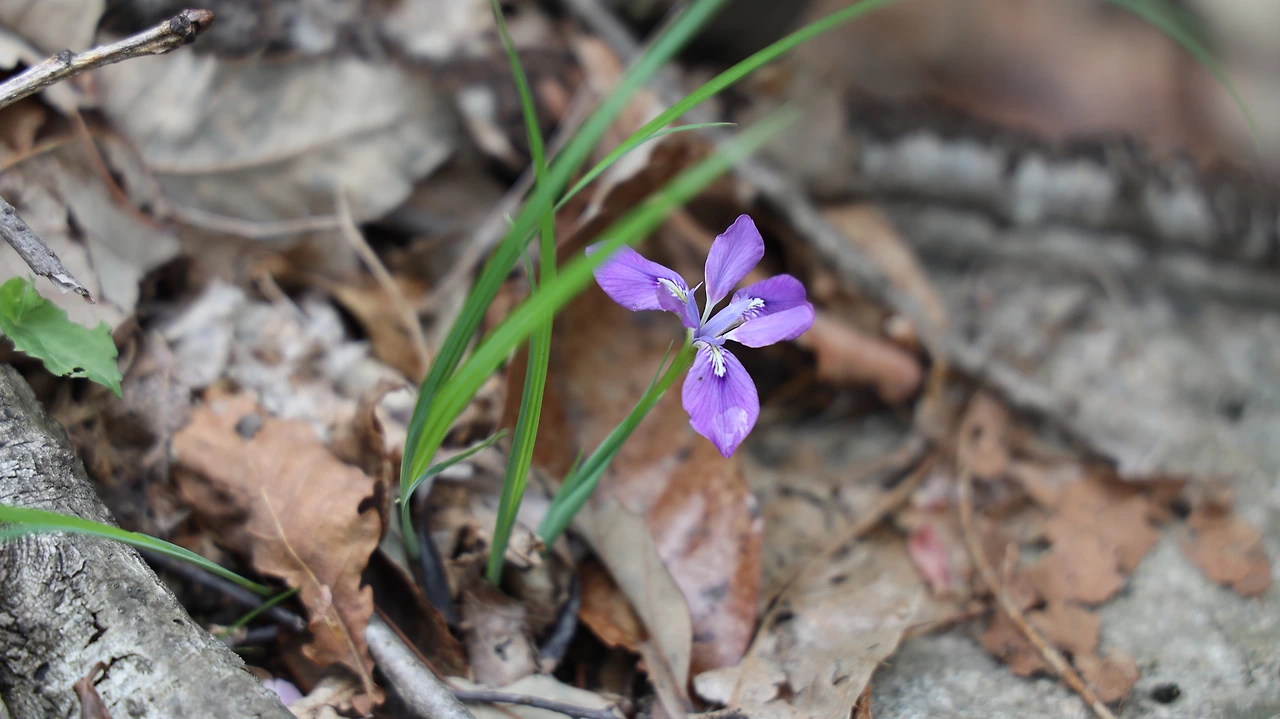 비가 와서 계획했던 산에서 명성산으로 급히 방향을 돌렸다. 기억해 둔 곳으로 때를 맞춰 찾지 않아도, 꽃을 볼 수 있는 시기가 되어 다행이다. 칼 모양의 잎이 쌍으로 겹쳐 돋은 잎 사이에, 잎보다 키 작은 꽃대마다 한 송이씩 피는 보라색 꽃을 산길에서 발견했다. 꽃받침과 꽃잎이 좌우 대칭으로 두 개의 삼각형 모양으로 어긋나, 6개의 꼭짓점을 향해 각각 붓모양으로 뻗었다. 이 맘 때, 산에서 흔히 보는 ‘각시붓꽃’이다. 마당의 정원에서 보는 붓꽃과 달리 앙증맞은 크기로 여기저기에 피어, 산길이 심심하지 않다. 햇볕을 좋아하기에 눈에도 잘 띈다. 녹색잎 사이에 살짝살짝 보이는 보라색에 끌려 들여다보다, ‘이 꽃의 암술과 수술은 어디에 있지?’라는 의문이 든다. 암, 수술이 꽃받침과 꽃잎보다 튀어나와야 한다는 고정관념을 깨는 꽃이다.