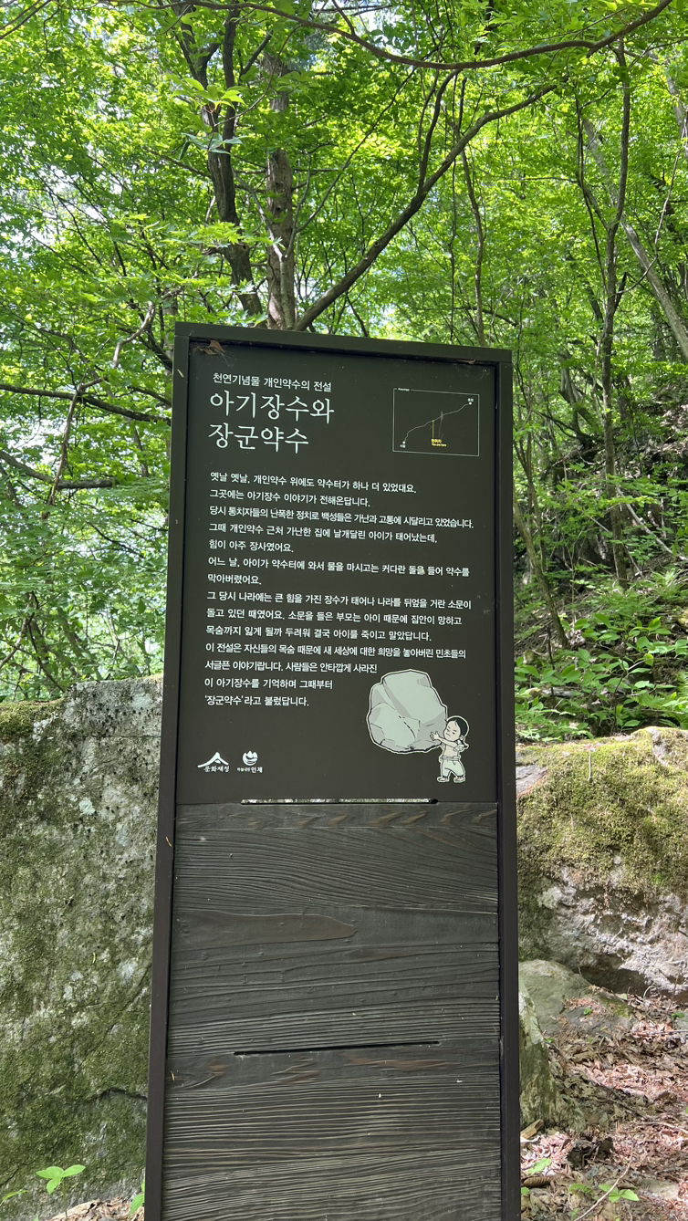 탄산과 쇠맛을 내는 개인약수는 장군약수로도 불렸다 한다. 아기장수 우투리와 비슷한 이야기가 서려있다. 크고 화려한 산꽃을 만나기 위해 개인약수에서 물맛을 보고 주억봉, 구룡덕봉의 방태산 능선을 지나 원점으로 내려오는 산행을 즐겨한다. 한니동에서 올라 용늪골을 지나 깃대봉 근처에서 머문 적도 있다. 장군약수 이야기는 용늪에 대한 전설로 인제문화원에서 펴낸 ‘인제의 옛이야기’에도 소개되어 있었다.