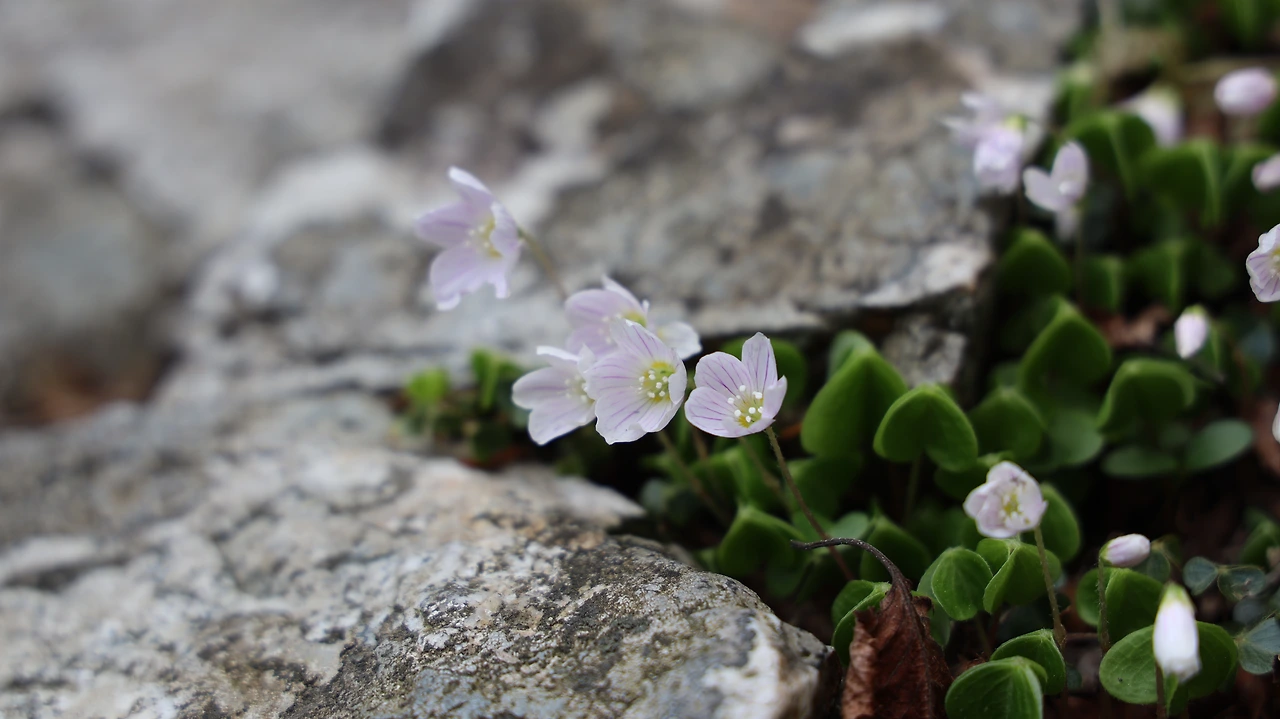 자식을 지킬 수 없었던 아픈 이야기와 때마침 능선에 부는 강풍은 어울렸다. 나아가려는 방향과 반대로 부는 바람에 발걸음이 느려지고, 고개는 더 땅쪽으로 향했다. 풀은 땅쪽으로 누워 꺾이지 않았고, 그 풀에 딱 붙은 곤충들도 덩달아 바람을 견디고 있었다. 바람이 잠잠할 때는 쉽게 뛰어넘던 바위와 바위 사이도 느리게 기어 건넌다. 그러다 바위틈 그늘에 여리여리하게 핀 애기괭이밥이 보인다. 강한 바람이 아니었다면 지나쳤을 것이다. 심장을 거꾸로 세운 세 장의 잎이 붙어, 한 가족의 세 심장이 포개져 있듯이 접혀 있다. 아기의 충혈된 눈동자 같은 꽃잎 5장이 수술 10개, 암술 1개와 어울려 피었다. 봄이 되면 사라졌던 풀이 다시 솟아나, 바람을 곤충과 함께 견디며 생명을 이어가고 있었다. 스스로 이어가는 자연의 시간을 상상하기 어려운 인간은 한순간만 보고 패배로 기록했지만, 자연은 끊임없이 도전하며 이어가고 있었다. 애기괭이밥이 나에게 아기장수는 또 태어날 것이고, 그때는 함께 지키자고 말하고 있었다.