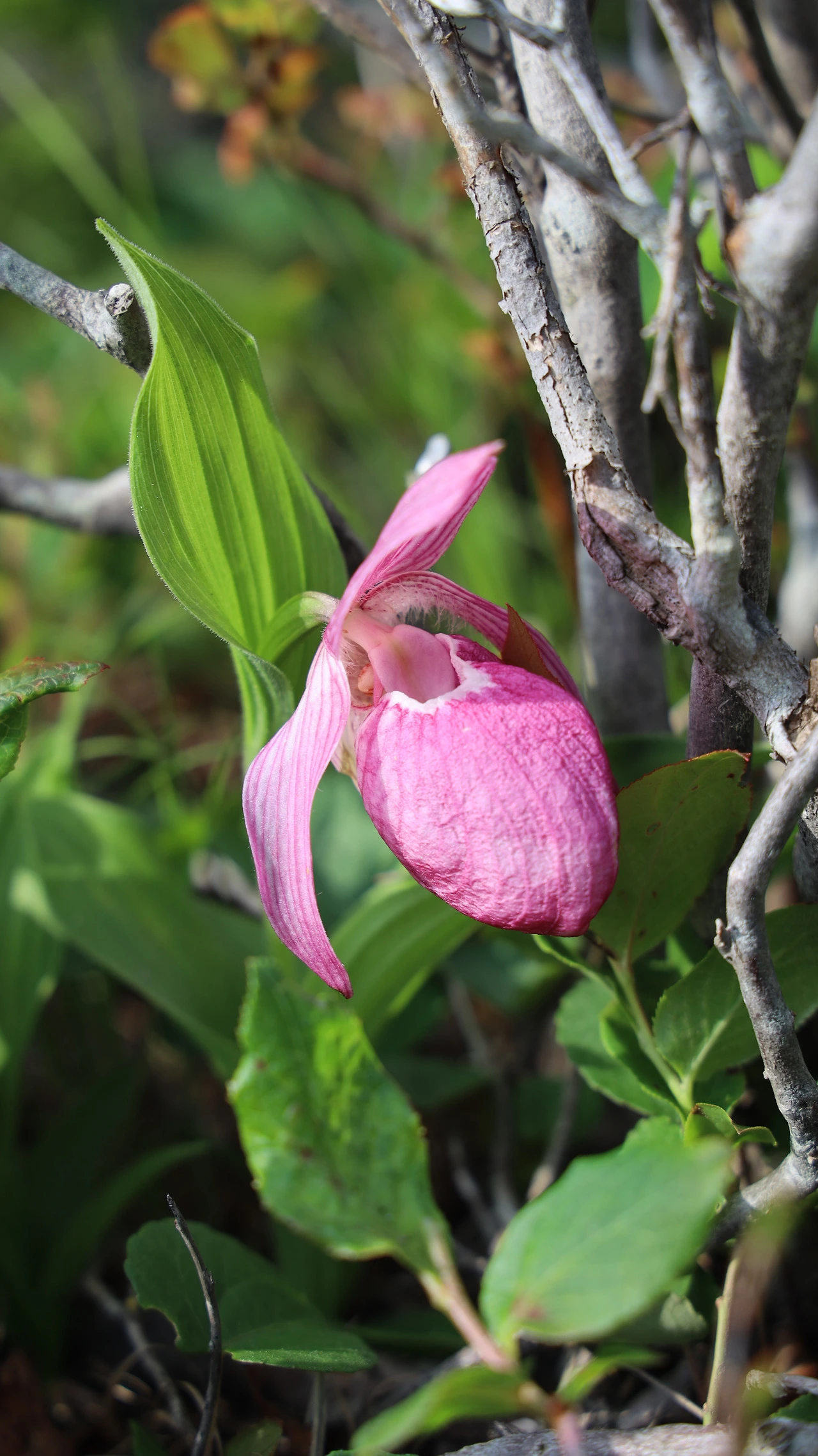 분홍색의 입술꽃잎은 복주머니 같다. 위쪽 꽃받침은 모자같이 복주머니를 덥고 양옆의 꽃받침은 팔을 벌린 모습이다. 귀여운 만화 주인공 같은 모습이다. 복주머니란이다. 이 꽃은 식물도감에서나 봤다. 이 꽃을 보기 위해서는 수목원에나 가야 하나 했었다. 자연스럽게 만날 수 없다고 여길 만큼 귀한 꽃이기에. 사진을 찍고 먹던 도시락을 먹고 다시 가보자고 했다. 사라졌을까봐. 이번에 보고 난 후엔 다시는 못 볼 수도 있으니까. 더 보고 가자고 했다. 그때 다른 산객이 지나며 인사를 했다. 나도 모르게 아무 말하지 말라고 신호를 보냈다. 마구 알리면 안 될 것 같아서. 그리곤 지나가는 그분들이 그 꽃을 보는지 안 보는지 쳐다봤다. 그냥 지나쳤다. 역시 산은 가다가 자주 뒤돌아 봐야 한다. 그 꽃을 보고 산동무는 소리 지르면 안 될 것 같았다고 했다. 한참을 걸어서 다시 자리 잡고 사진을 보면서 이것이 꿈인지 아닌지를 연발하며 좋아했다. 어쩌자고 산은 우리에게 아낌없이 다 보여주는지 모르겠다. 산 앞에선 한없이 겸손해진다.