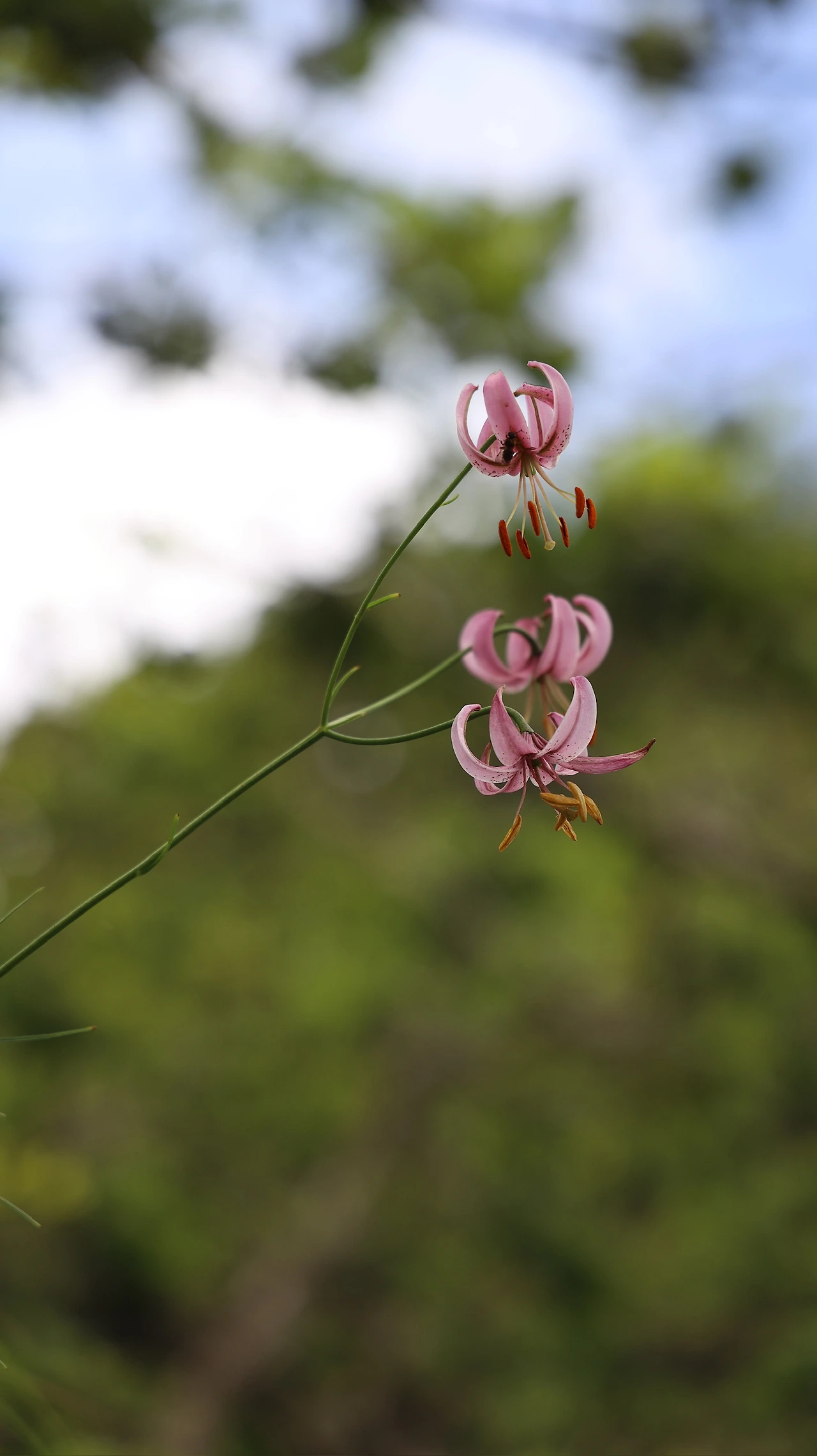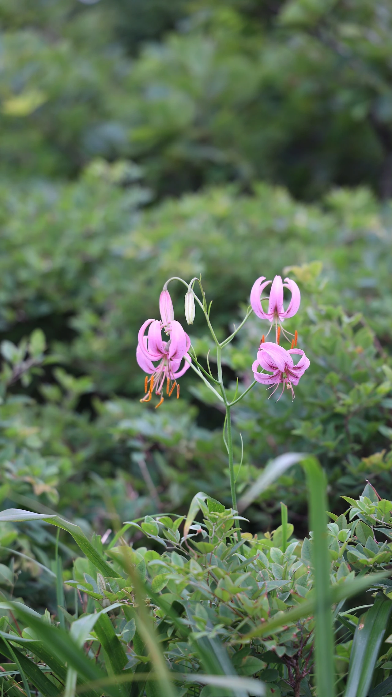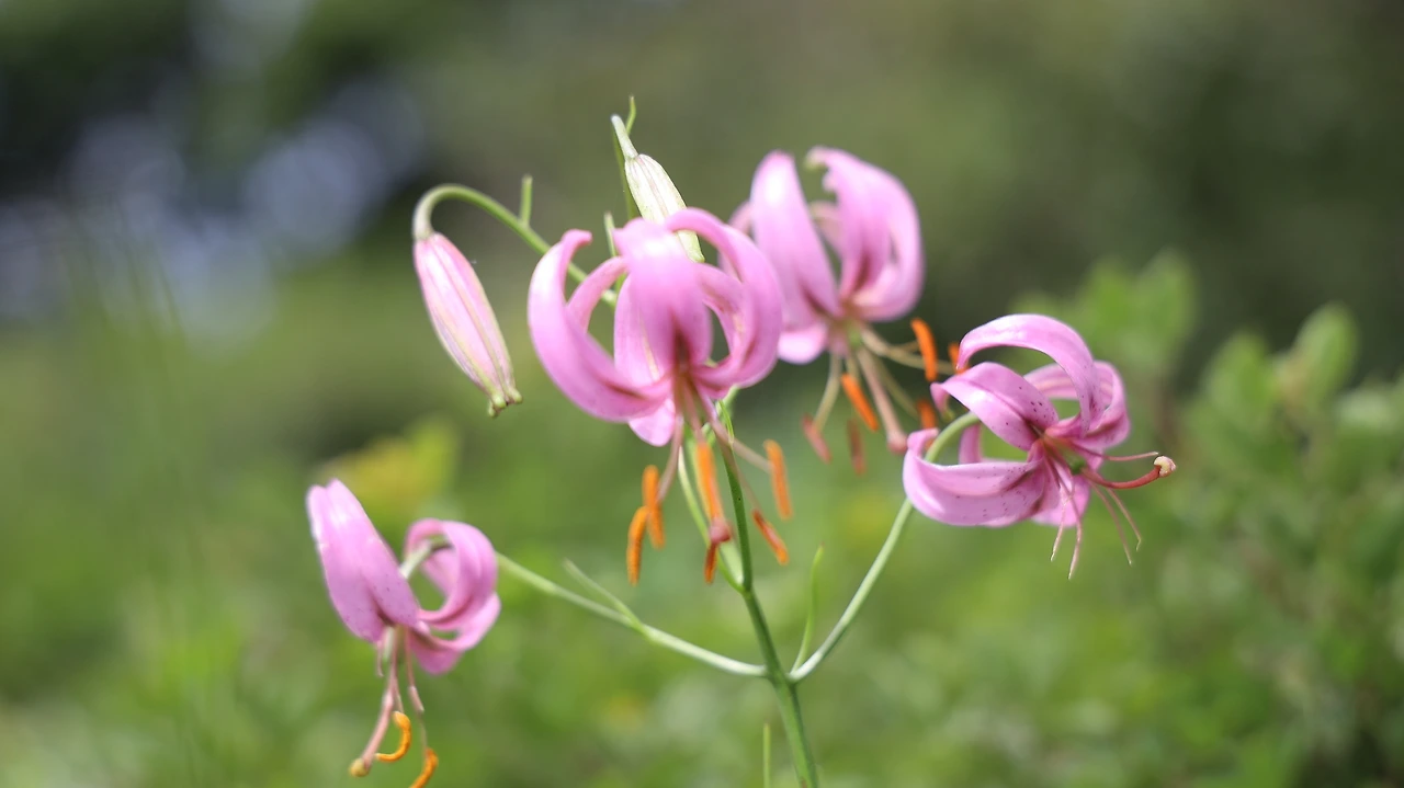 남덕유산은 바위 맛집이다. 정상까지 바위에 걸쳐놓은 계단을 오르며 하늘과 능선을 조망하며 오른 산을 느낀다. 이제 서봉을 향하며 눈을 부릅뜨고 찾는다. 전성기를 지나 지고 있는 한 송이를 발견했다. 그래도 만나서 다행이다. 한 송이를 봤으니 더 많이 보일 것이다. 또 한 송이를 보고 나니 욕심은 더 일어난다. 한 줄기에 여섯 송이가 왕관처럼 펼쳐져 바람에 흔들리며 새소리와 어울려 눈과 귀가 함께 열리던 모습이 보고 싶다. 이것은 욕심이지만 그 욕심을 감추기는 어렵다. 서봉에 가까워질수록 더 많다. 이 꽃의 잎은 소나무 잎같이 생겼고, 꽃은 여섯 꽃잎이 뒤로 돌돌 말려 수술의 주홍 꽃밥이 더 도드라져 보이는 ‘솔나리’이다. 크기도 색도 남다르다. 분홍빛과 보랏빛이 섞여 눈을 사로잡고, 주홍 꽃밥이 선명하게 여섯 점을 찍는다.