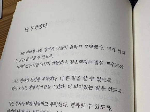 나에게 고난은 없을 거라며 자만했던 지난날에 대한 후회.