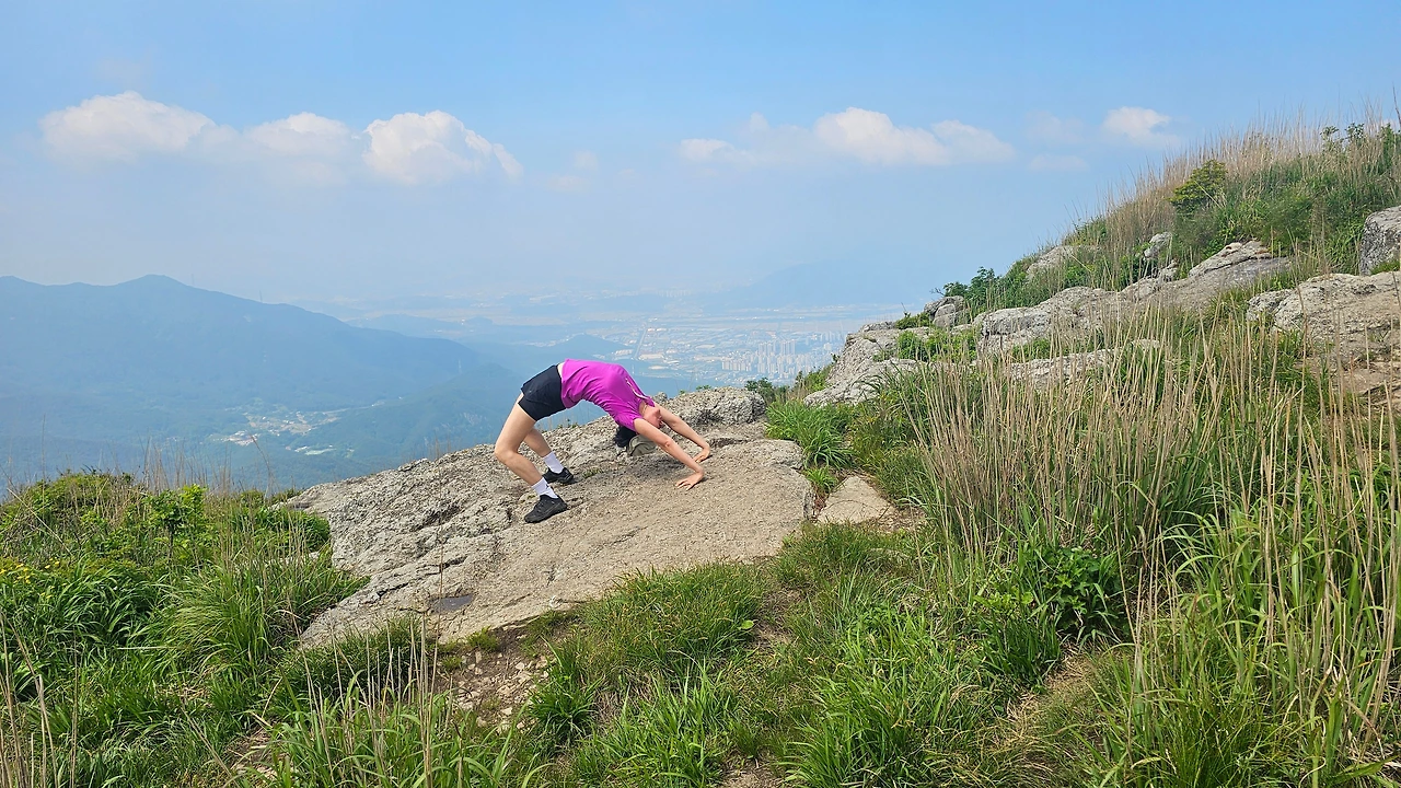 산에서 요가찍기에 재미를 들렸으니 등산도 나설 때마다 동작을 구상해야 한다. 그런데 실내가 아니라 누울 수도 없고 땅에 배를 닿는 것도 쉽지 않아 제한이 많다. 소화하지 못하는 고난도 동작들도 많은데 할 줄 아는 선에서 다양성을 추구하려니 머리를 쥐어짜며 배웠던 동작들을 복기해야 한다. 그래서 선생님의 수업을 기억하는 것은 중요하고 특별하다