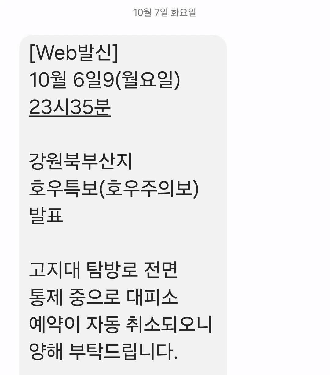원래는 화요일 새벽에 등반을 시작해서 소청 대비소에서 하룻밤을 자고 수요일 저녁에 끝나는 일정이었다. 그런데 끊이지 않는 비에 설악산 자체에서 '부분통제'를 실행했다. 말이 부분이었지 사실상 가능한 등산로 대부분의 통제였다. 대피소 취소문자가 왔다.