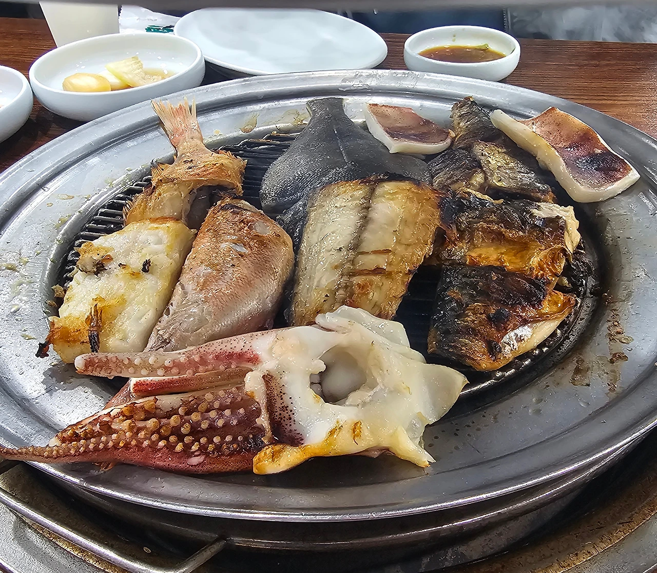 세 명이서 어떻게 할지 고민을 하다가 다음을 기약하며 우리는 차로 광명역으로 향했다. 그런데 막상 다시 광명으로 돌아오니 이것도 아니다는 생각이 들었다. 집에 가면 두고두고 후회를 할 것 같았다. 일기예보는 비는 오지만 흐림으로 다음날 기상 상태가 최악은 아니었다. 기다려 본다면 오후 늦게 '설악산 부분 통제'가 풀릴 수도 있을 것 같았다. 우리는 속초로 다시 이동해서 일단 밥을 먹고 시간을 두고 기다려보기로 했다. 맛집을 찾아 정한 생선구이 가게는 긴 줄이었지만 테이블이 많아 생각보다 대기 시간이 길지는 않았다.