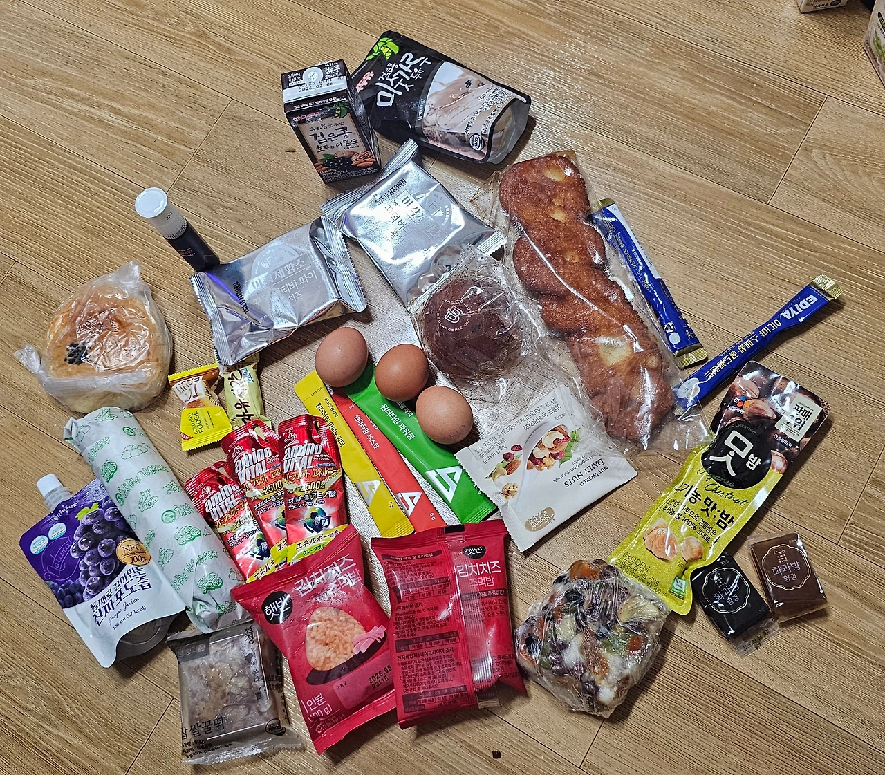 십시일반 서로가 가져온 간식이다. 세 사람이 각자 가져온 간식을 서로 모았더니 풍성했다. 우리는 똑같이 나누어 개인가방에 꼼꼼히 챙겨넣었다. (물 두 개는 따로 챙겼다) 다행히 설악 등반동안 충분히 들고 다닐 수 있을만큼 무겁지 않았다. 그리고 끝난 후에도 간식은 남았다.