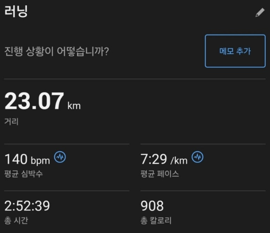 결국은 23km를 뛰었습니다. 3시간가량 뛴 거리치고는 좋은 성적은 아니었지만 처음의 두려움과 달리 23km는 벅차고 기쁜 숫자였습니다. 8만 원의 풀코스 비용을 생각하며 제대로 하지 못하면 날릴지도 모른다는 죄책감보다는 그 풀코스 신청이 있었기에 많은 날 밖으로 나가고 뛰었던 스스로의 연습들을 칭찬해 주고 싶었습니다. 그것을 돈으로 따지면 어디 8만 원뿐이겠습니까. 몇 달을 합치면 몇 십만 원, 몇 백만 원에 해당하는 운동량일지도 몰랐습니다.