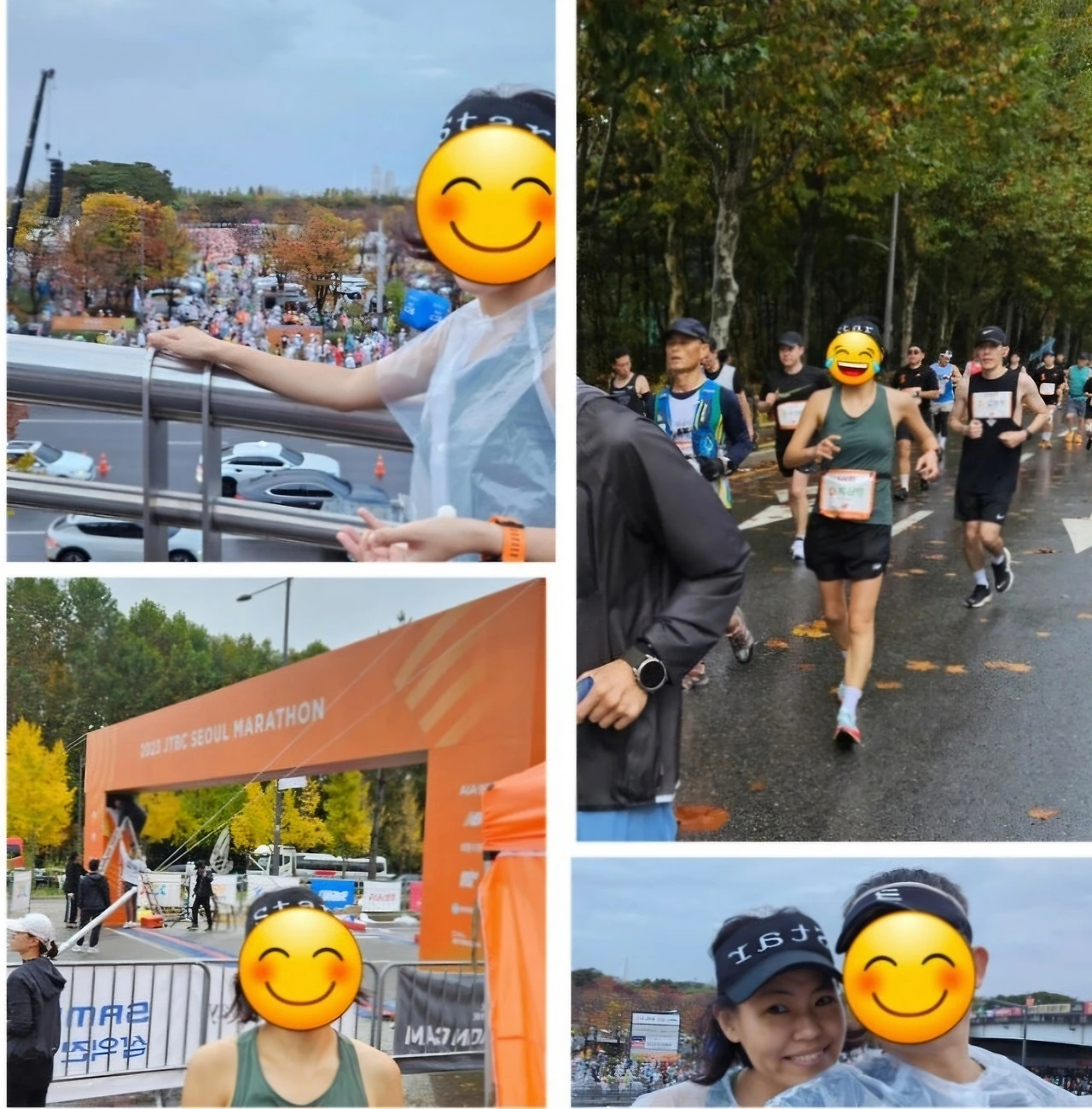 첫 풀코스 도전인데 새벽부터 비가 왔습니다. 제가 참가한' JTBC마라톤'은 우리나라의 3대 마라톤 중 하나이기에 3만 명 이상 집결한 대회장은 수많은 인파들로 북적북적했습니다. 세상에나, 달리기를 하고 풀코스를 도전하는 사람들이 이렇게나 많았다니 저는 그저 깜짝 놀랄 수밖에 없었습니다. 남편말에 의하면 좀 달린다는 사람들은 이런 메이저 대회를 손꼽아 기다리기에 전국에서 모인 인파라고 했습니다. 저처럼 호기심이나 인생 경력에 한 줄 남기고픈 얄팍한 의도로 온 사람과는 급이 달라 보였습니다. 비장미가 느껴졌습니다. 이미 기존 풀코스 경력이 있는 엘리트나 A~C그룹과 달리, 저처럼 처음 풀코스를 도전하거나 3년 이내 기록이 없는 사람들은 D그룹으로 배정되어 풀코스 참가그룹 중에서 제일 늦게 출발했습니다. 이것이 능력에 따른 냉정한 스포츠의 세계라 하더라도 계급처럼 나누어진 분류에서 제일 꼴찌에 배정되는 것이 그리 달갑지만은 않았습니다. 차츰차츰 능력을 끌어올려서 조금이나마 앞선 알파벳에 배정받고자 하는 마음이 마라톤 시작도 하기 전에 벌써 마음속에서 꿈틀거리고 있었던 이유이기도 했습니다.